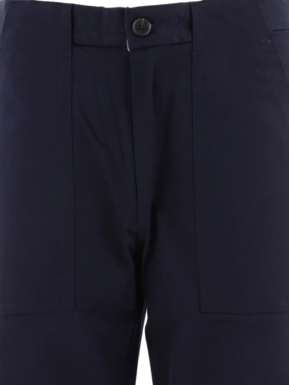 Синяя хлопковая смесь, застежка на пуговицы, накладной логотип, прорезные карманы
