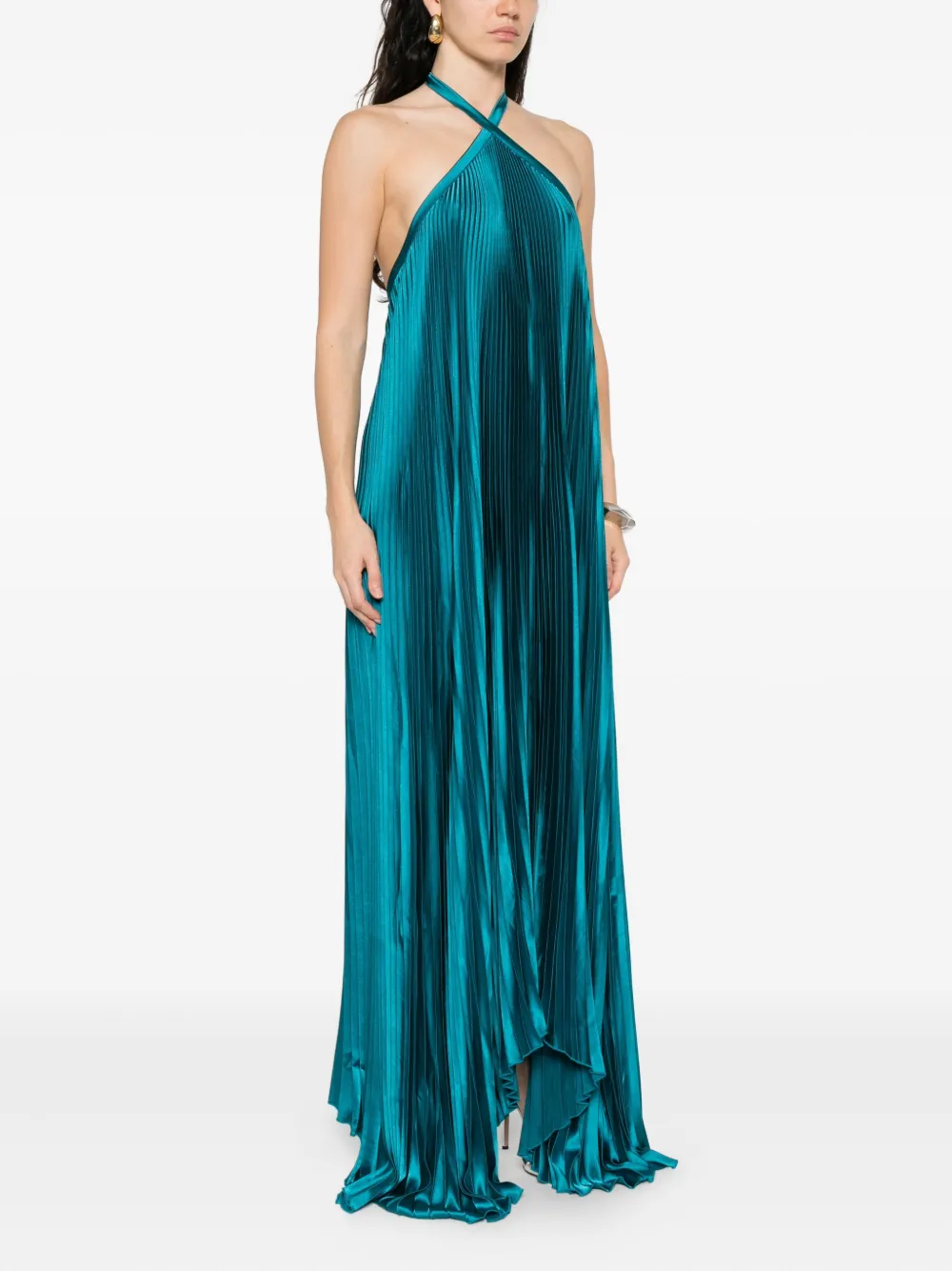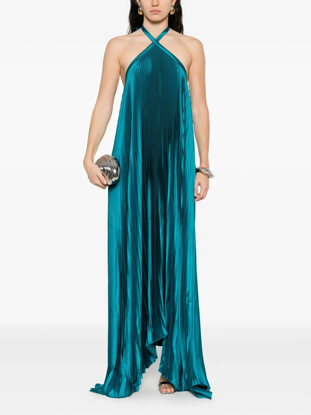 Платье Deesse с плиссировкой и халтернеем L'IDÉE, синий