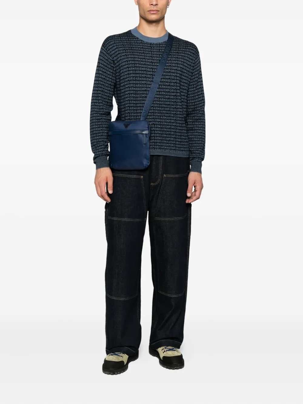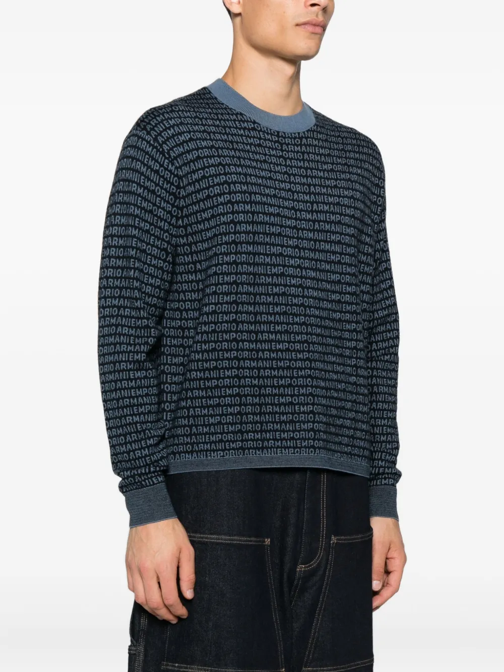 Шерстяной свитер с логотипом EMPORIO ARMANI, синий