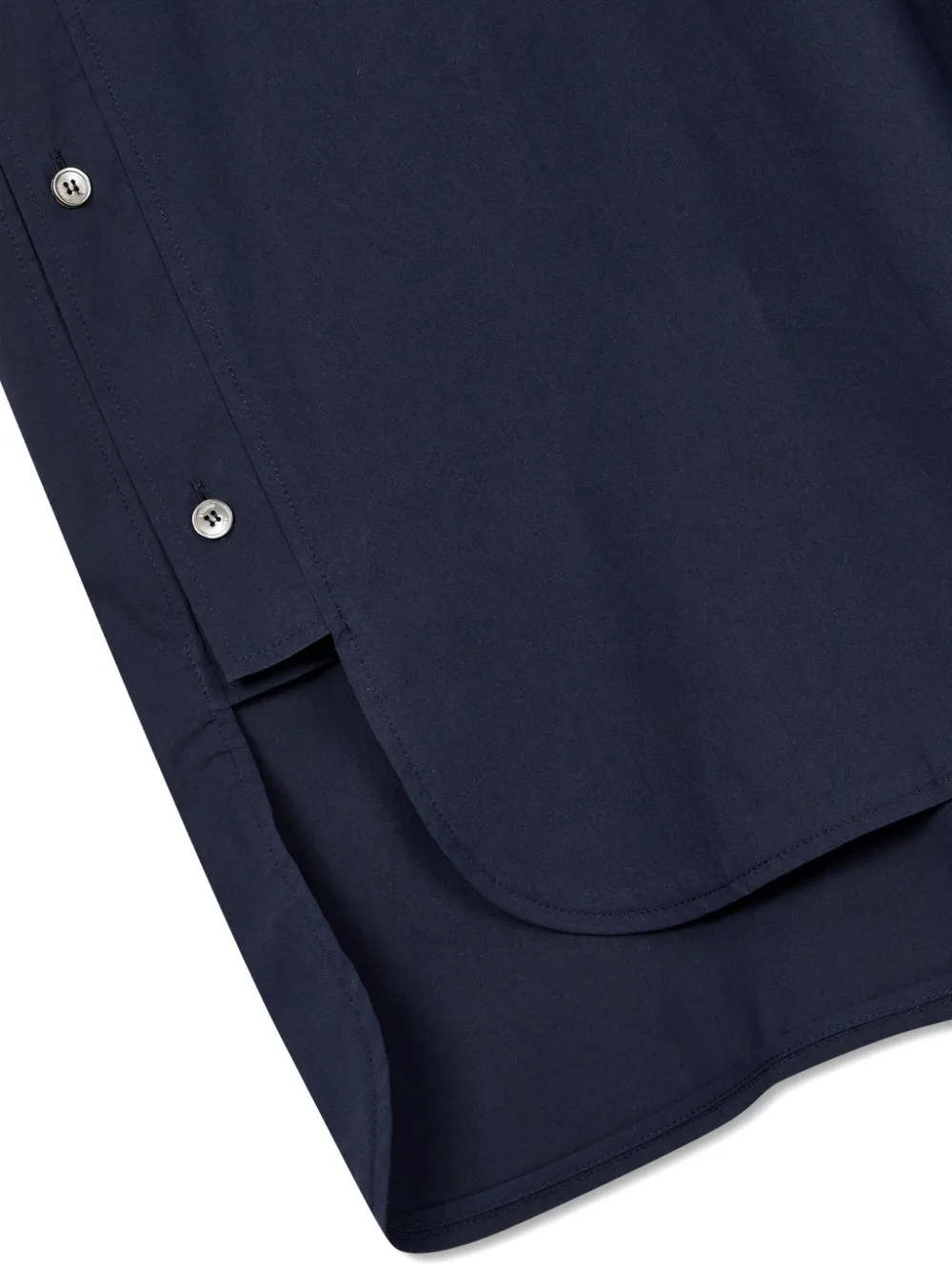 Темно-синие пуговицы, длинные рукава, застегивающиеся на пуговицы манжеты, нагрудный карман