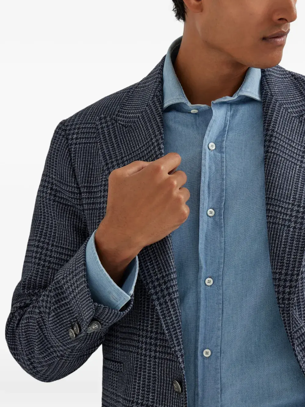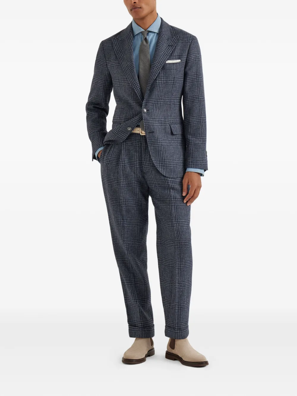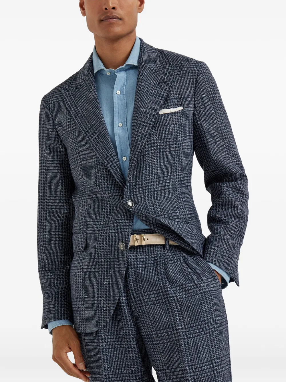 Блейзер в клетку «Принц Уэльский» Brunello Cucinelli, синий