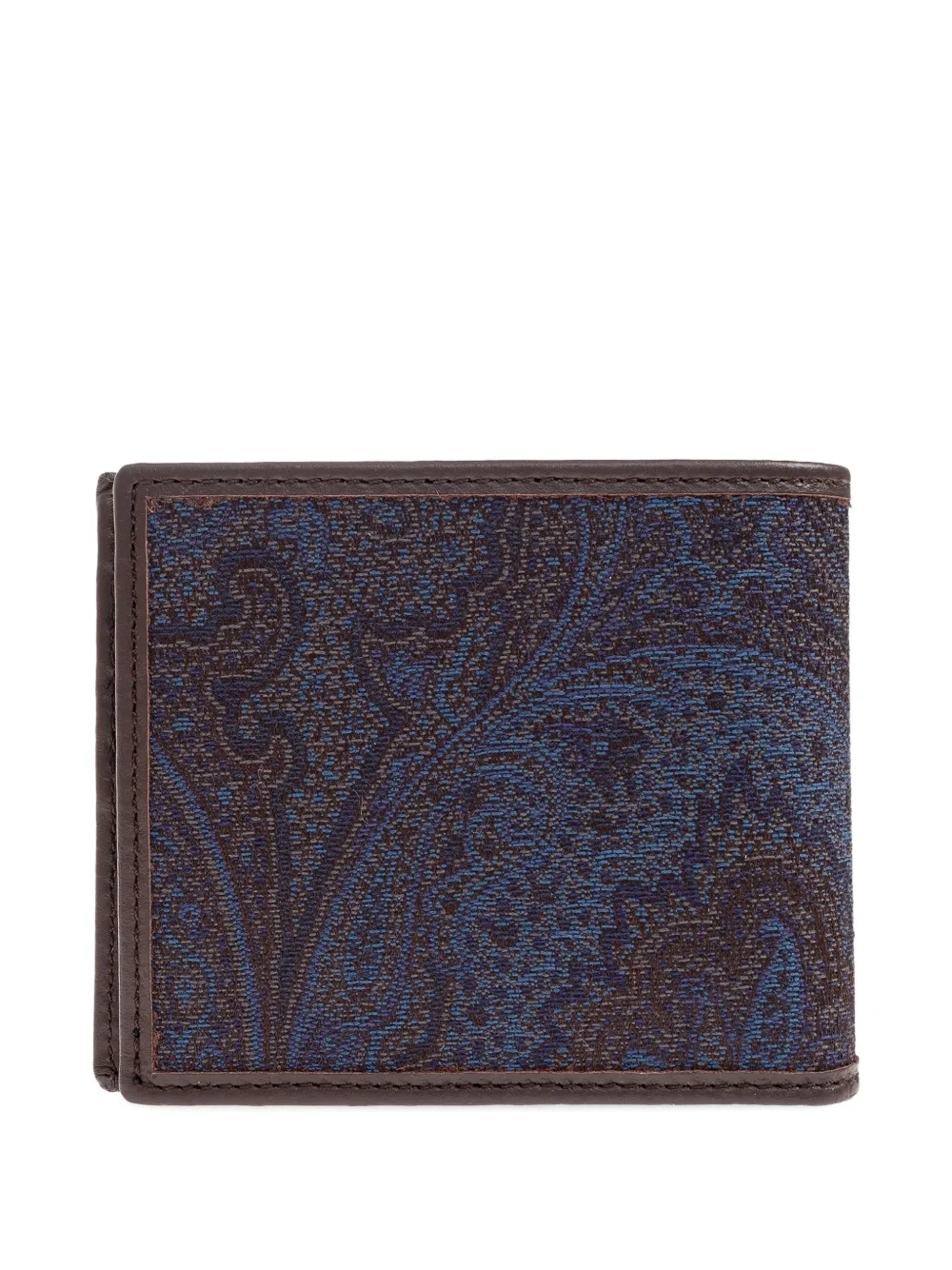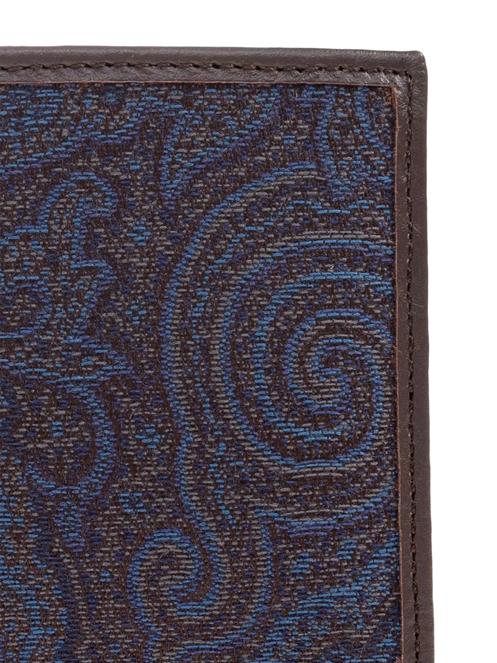 Синий узор пейсли, коричневая кожаная отделка, отделения для карт, двойной дизайн, тисненый логотип