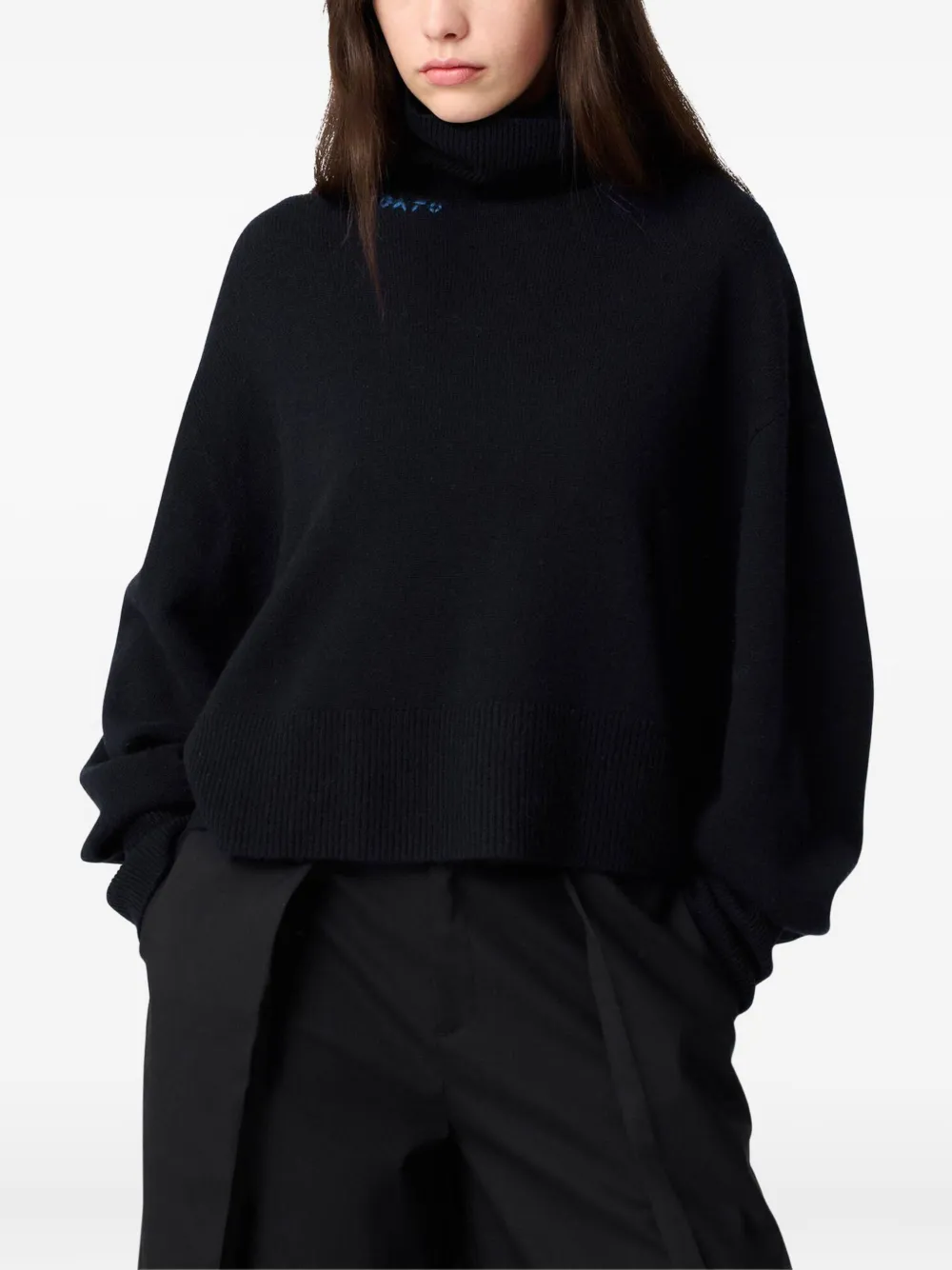 Темно-синий водолазный воротник с вышитой деталью из смеси шерсти