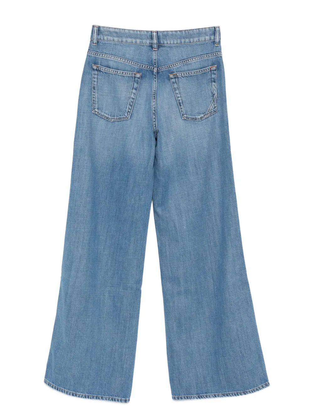 Синяя хлопковая конструкция, широкие штанины, застежка на пуговицы, пять карманов