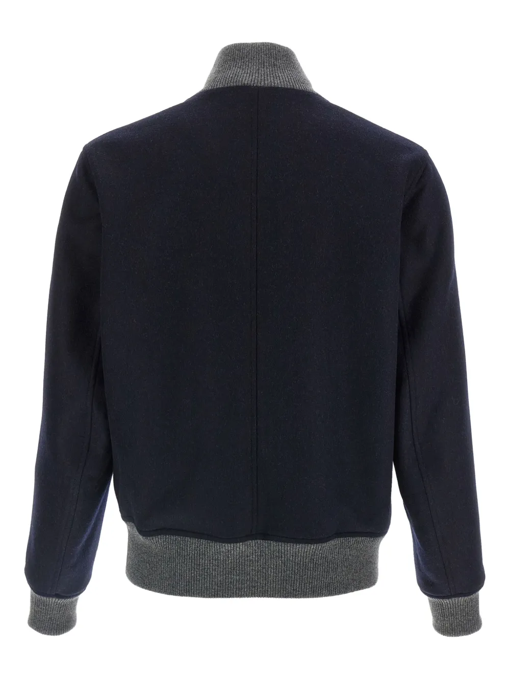 Куртка-бомбер из шерстяной вязки в рубчик Brunello Cucinelli, синий