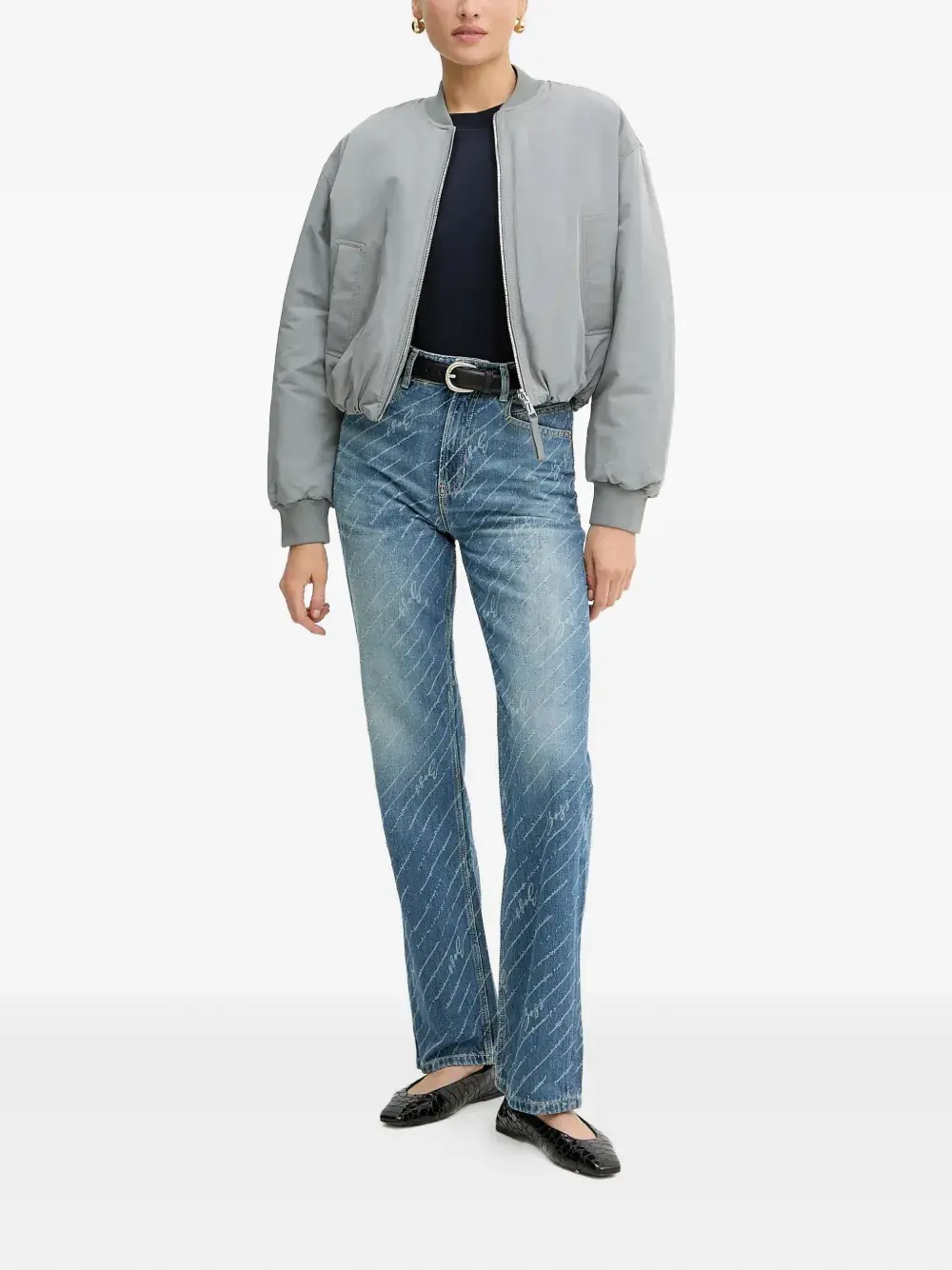 Утепленная куртка-бомбер на молнии BOSS, синий