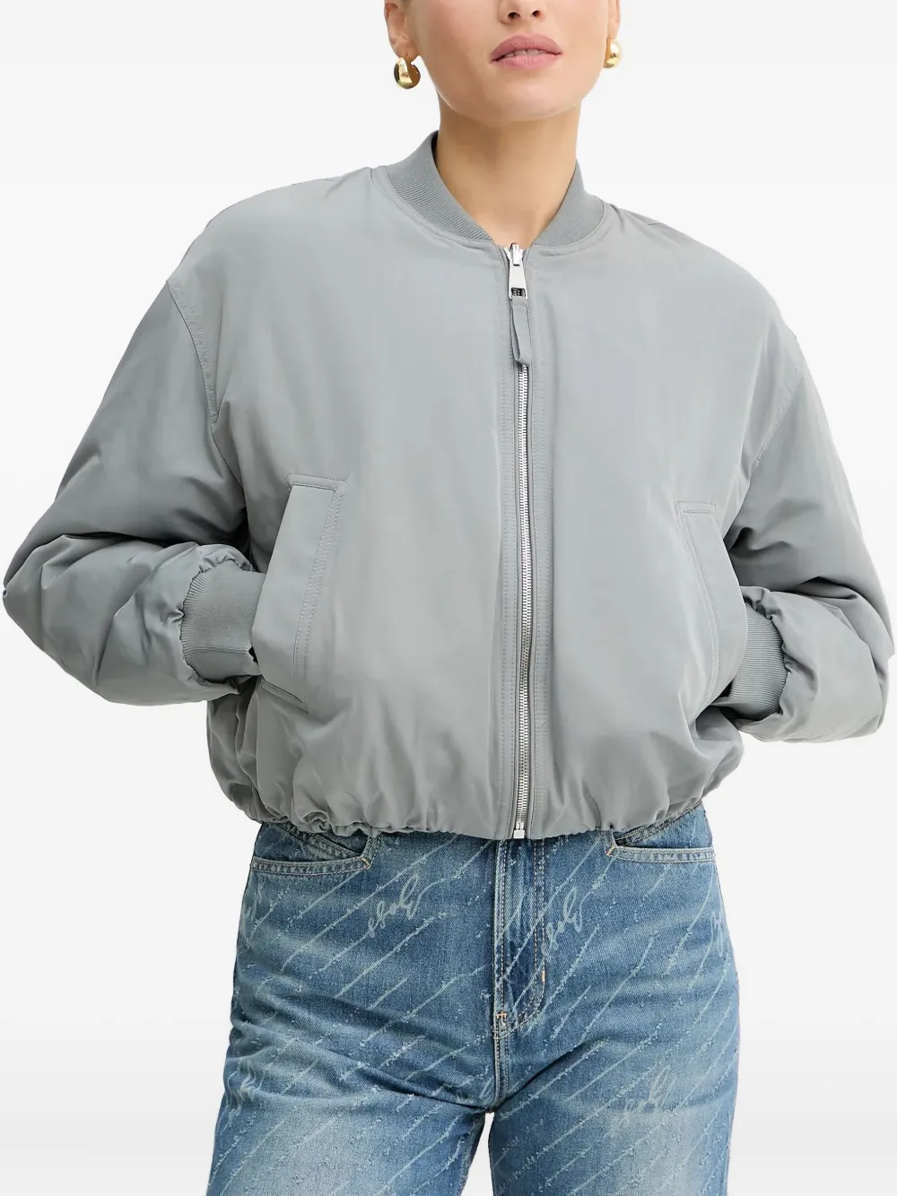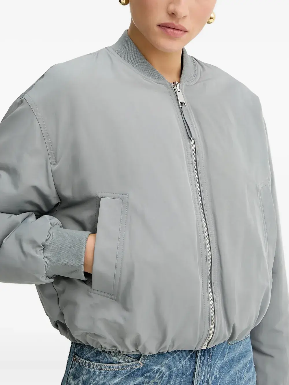 Синяя застежка-молния с мягкой подкладкой, ребристые манжеты, эластичный подол, прорезные карманы