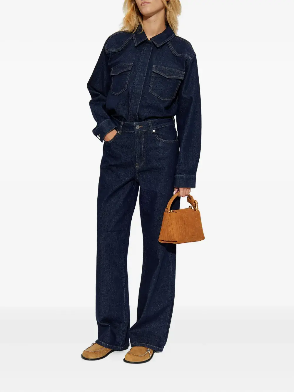 Темно-синяя ширинка на пуговицах с пятью карманами