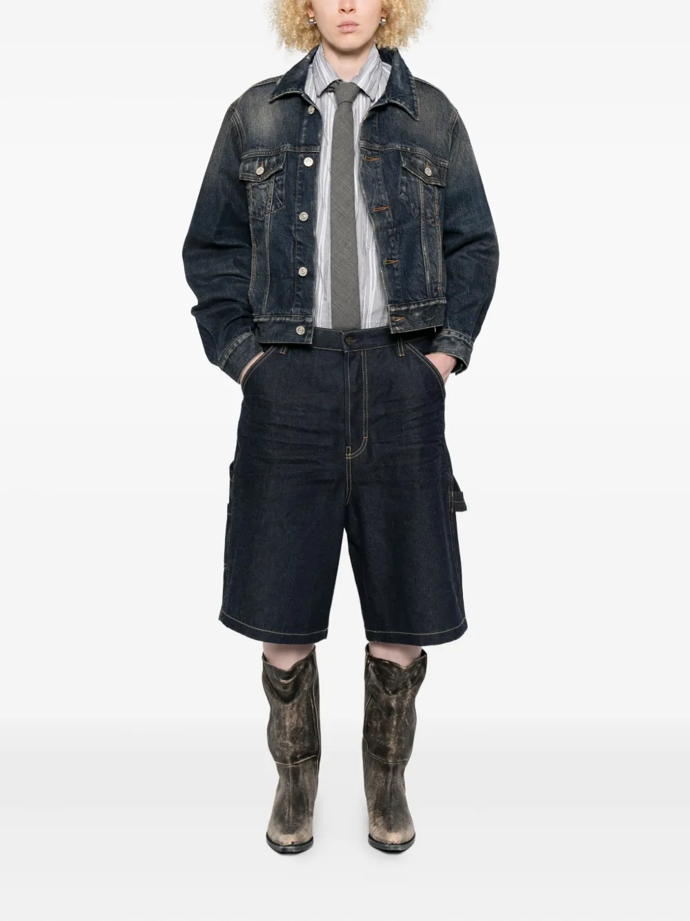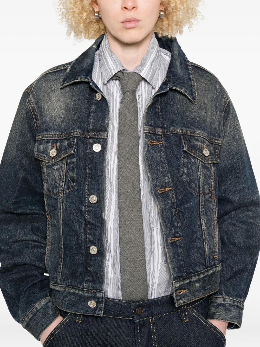 Джинсовая куртка с открытыми плечами BALENCIAGA, синий