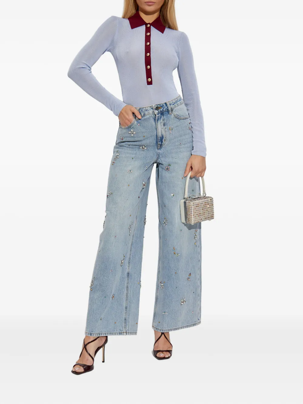 Боди-поло из ребристой вязки Self-Portrait, синий 45 601₽