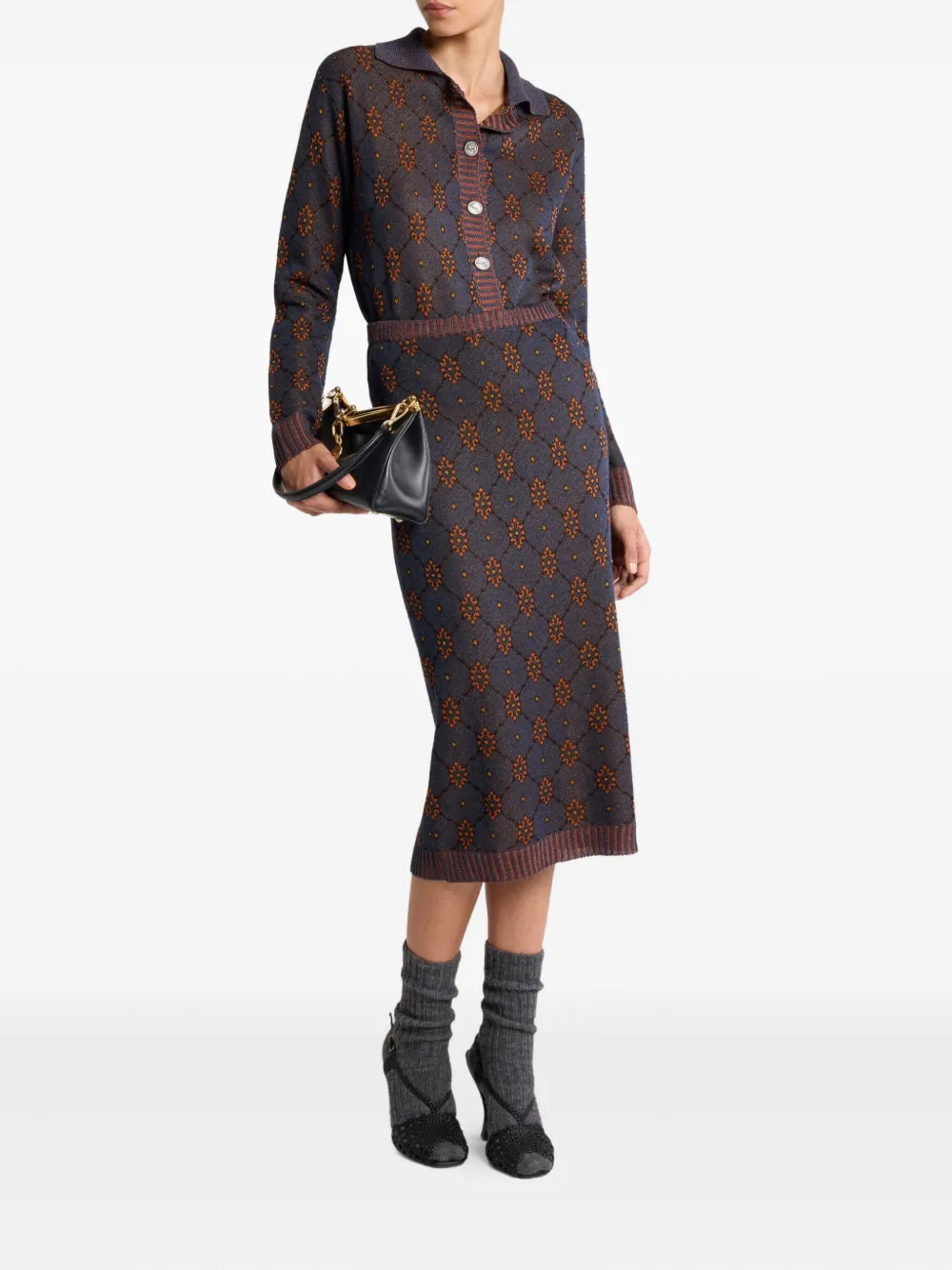 Кардиган с воротником-поло и узором ETRO, синий 84 208₽
