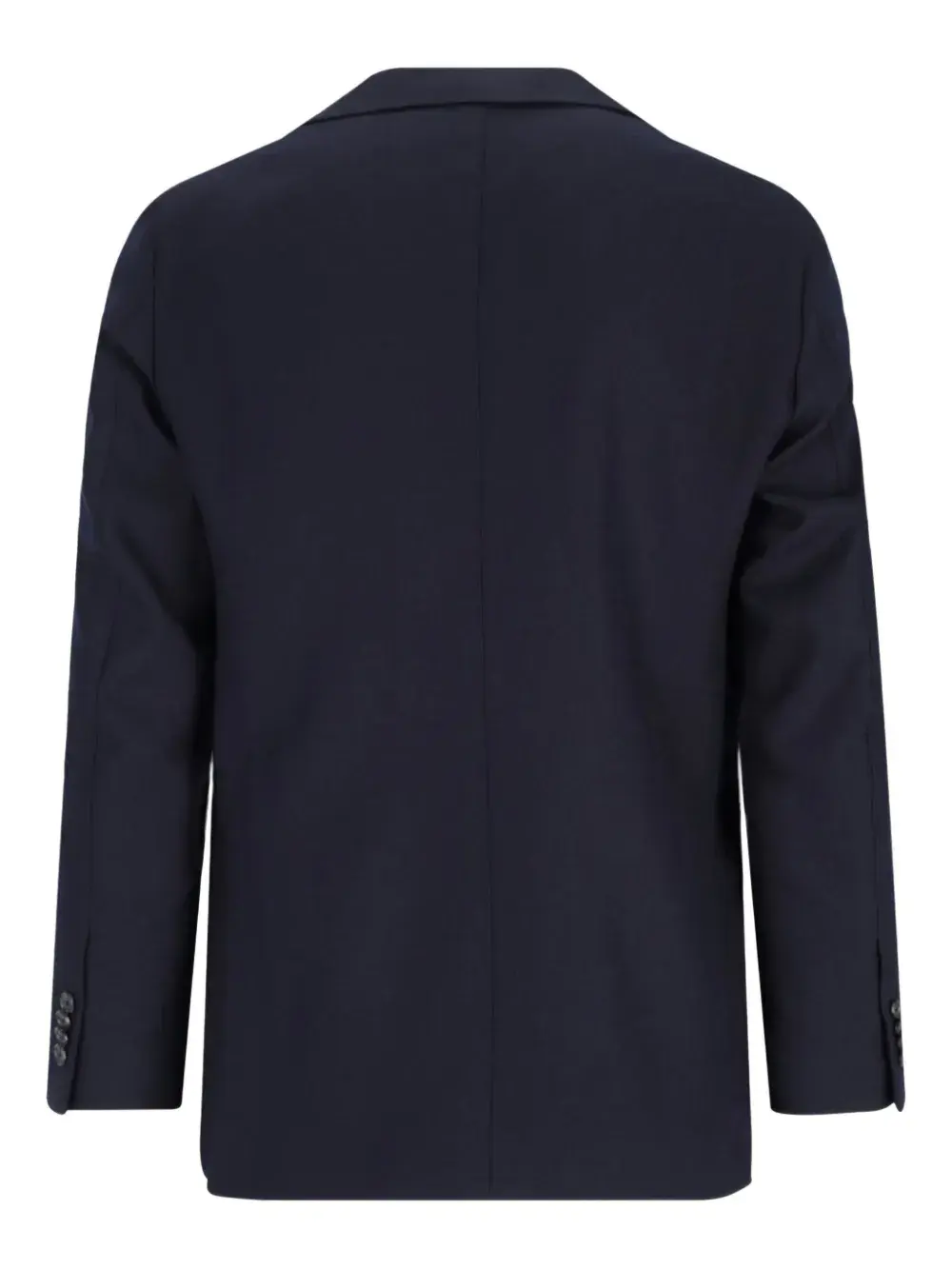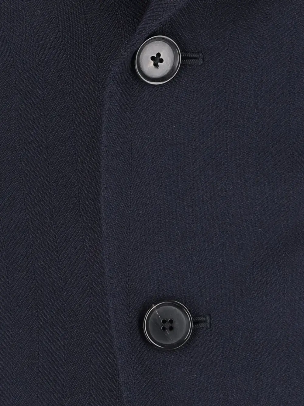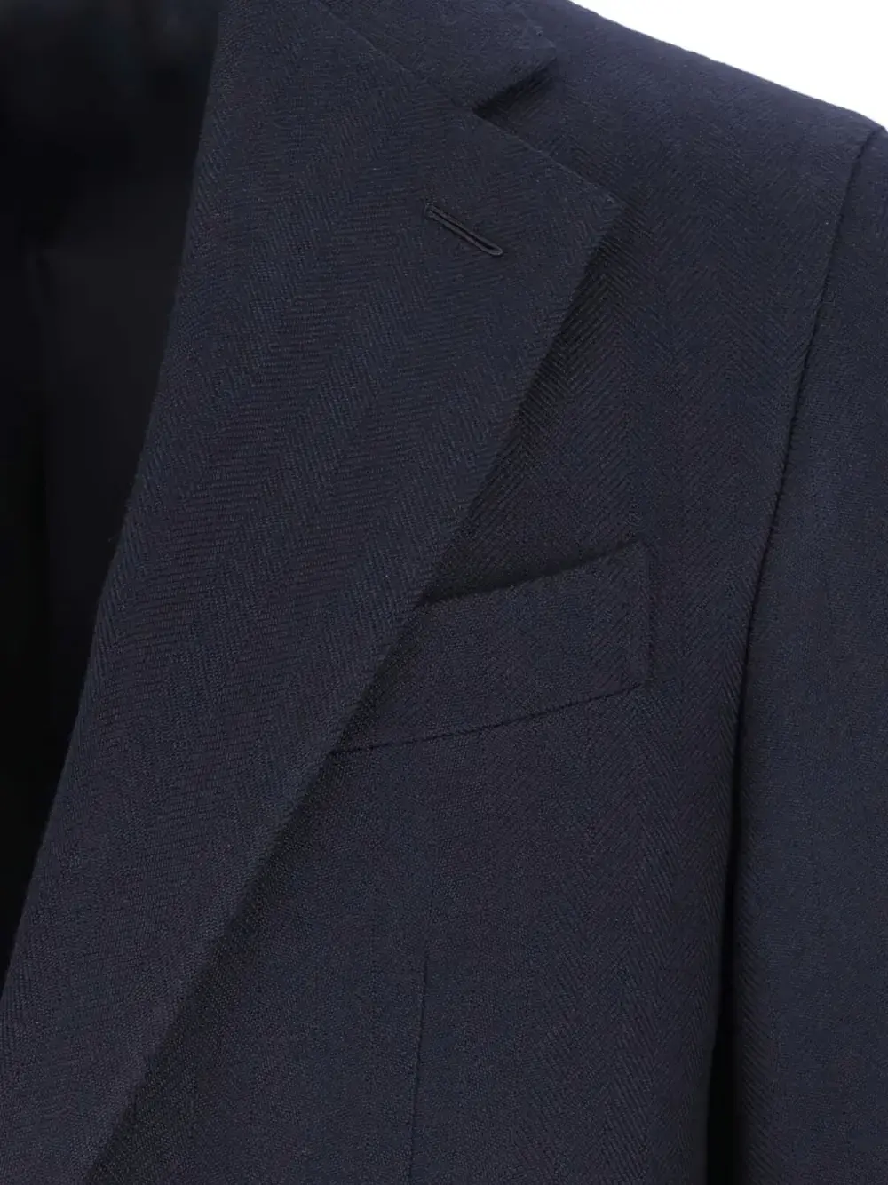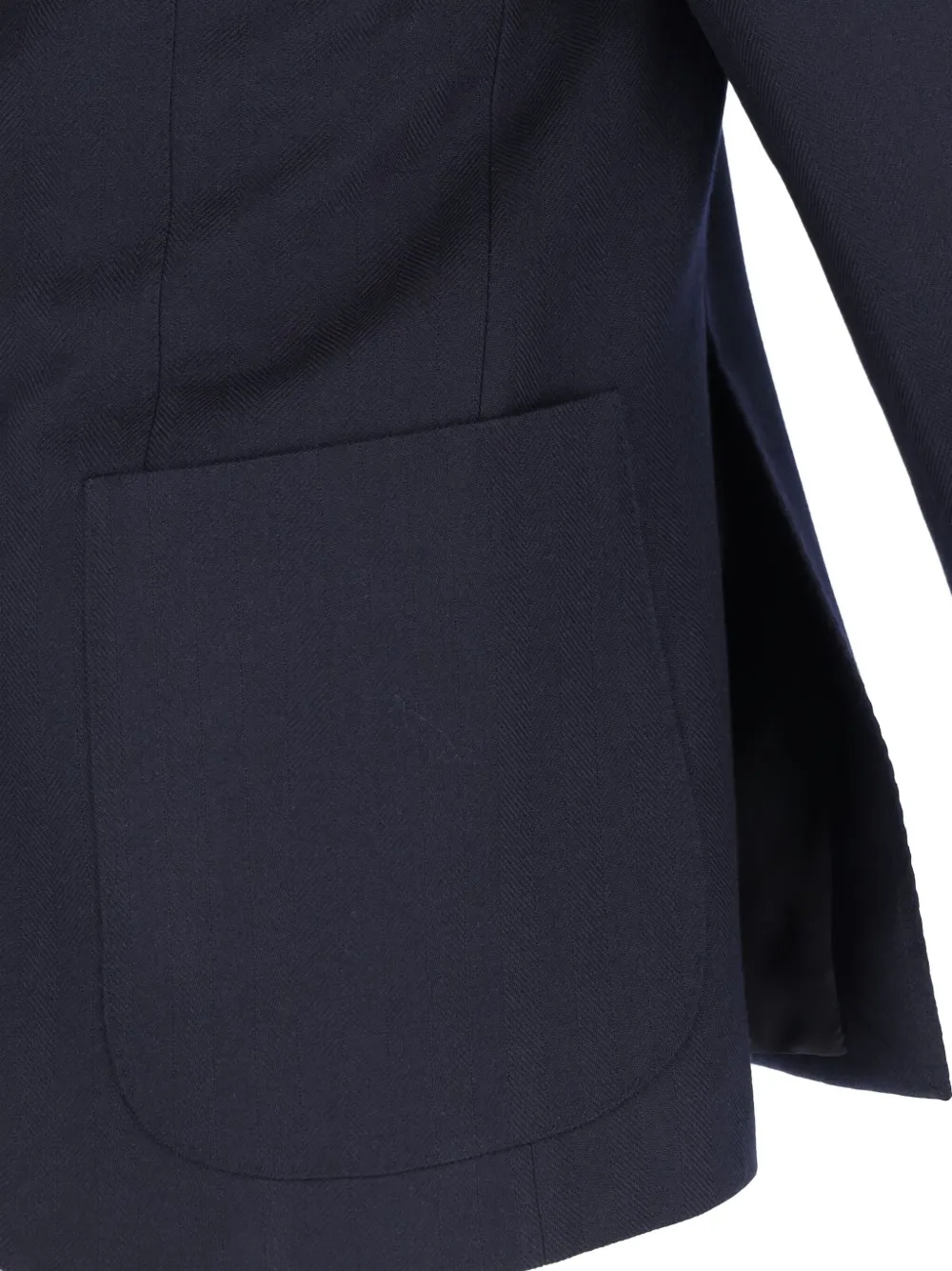 Синие шерстяные накладные карманы, застежка на пуговицы, отворот с зазубринами