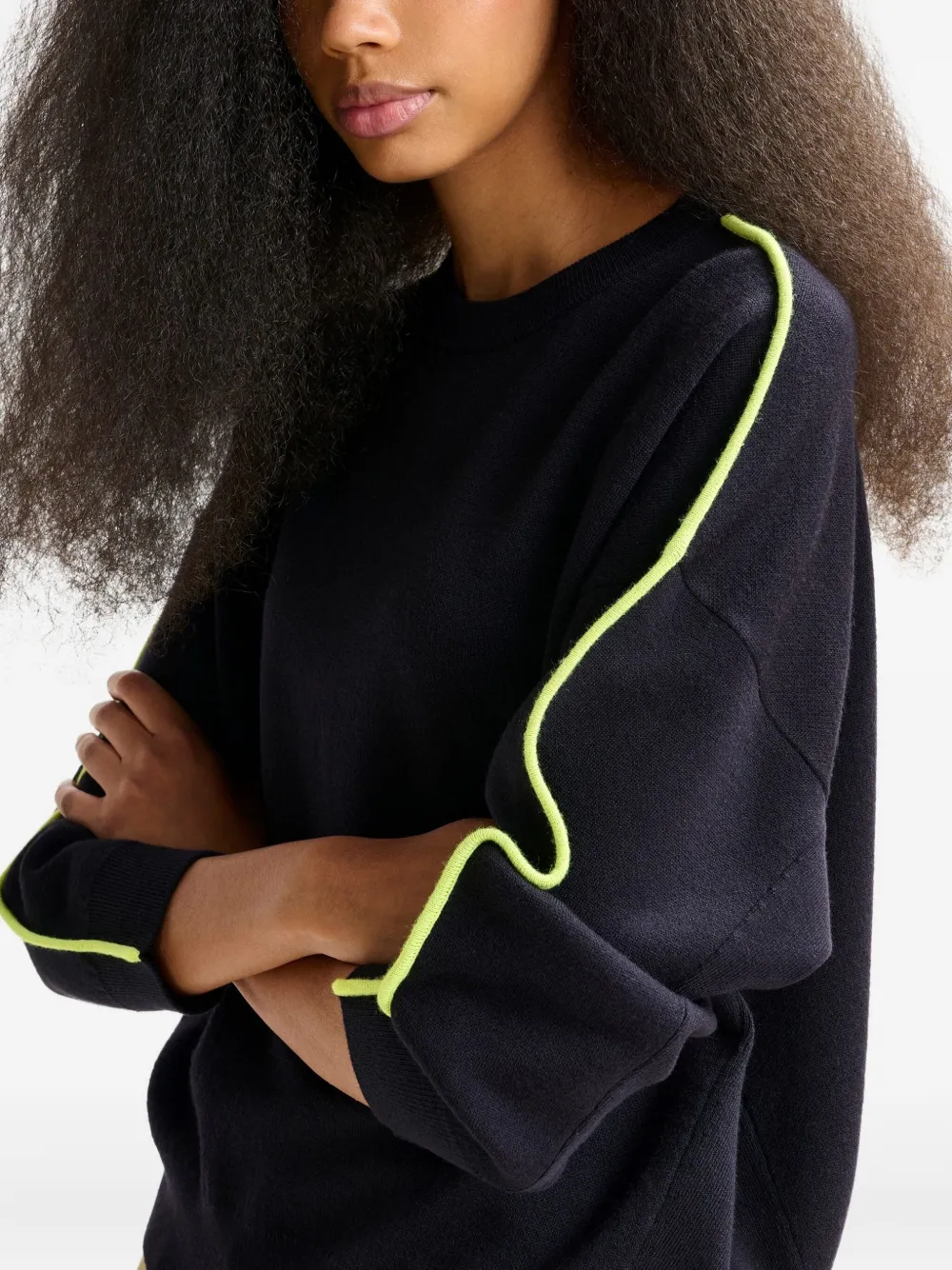 Темно-синий круглый вырез горловины, рукава «летучая мышь»