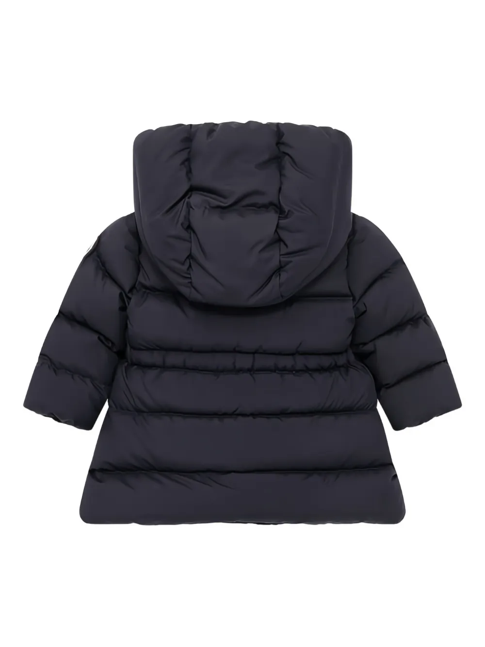 Пуховик с капюшоном и оборками Moncler Enfant, синий