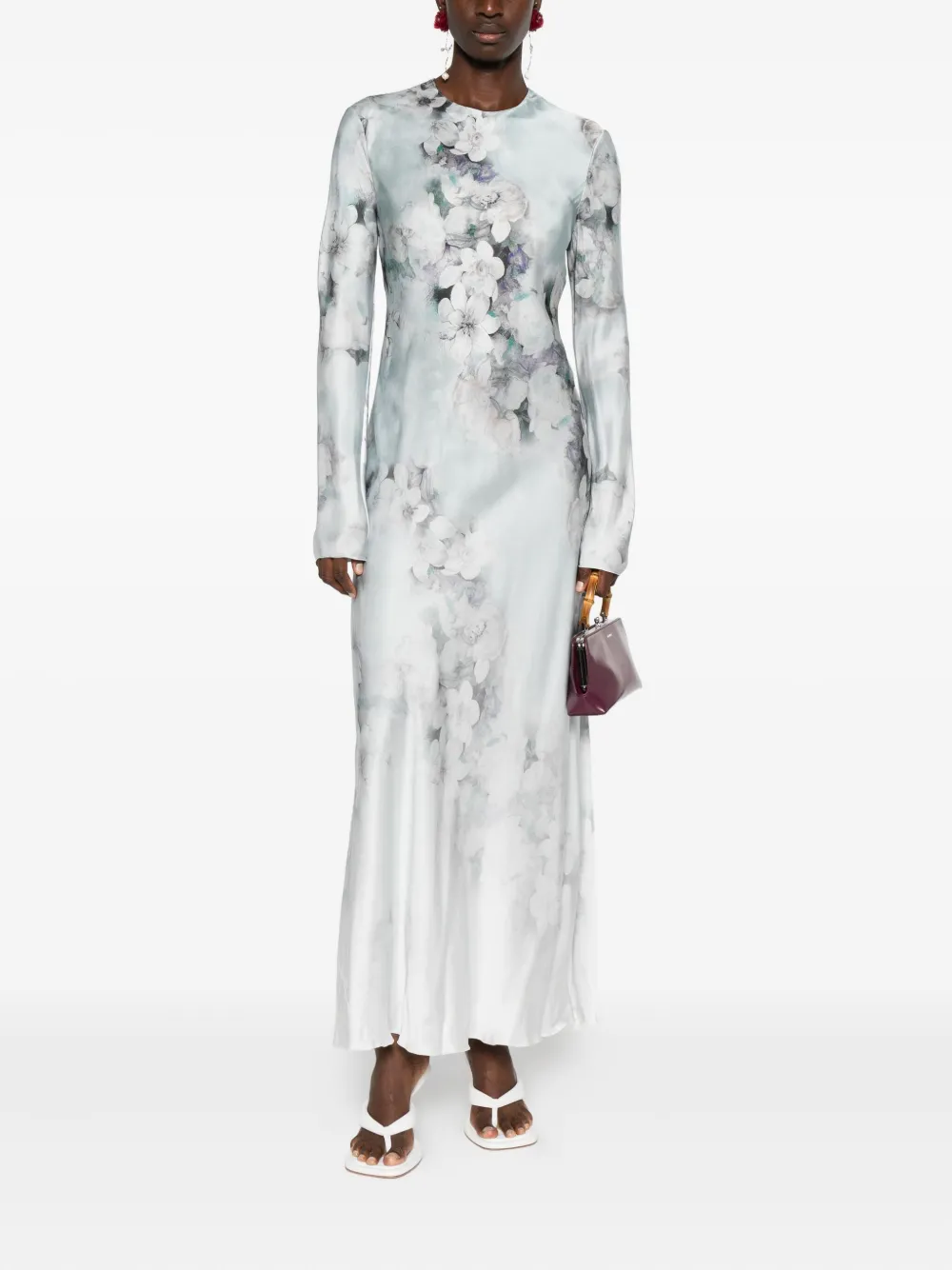 Платье с длинными рукавами и цветочным принтом Alberta Ferretti, синий 98 565₽