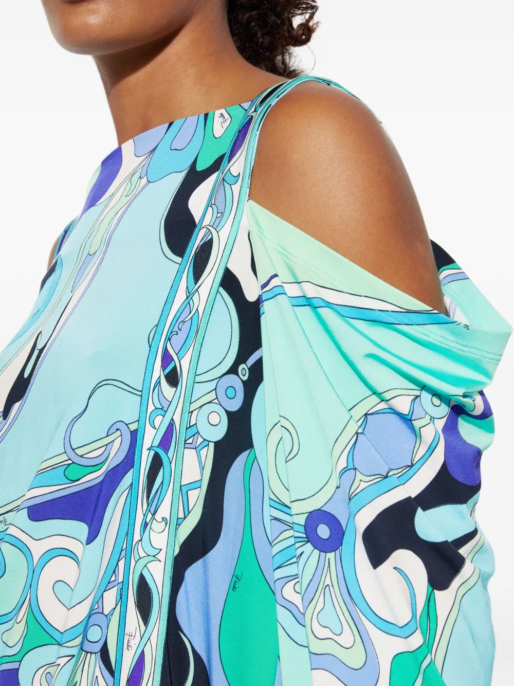 Платье с принтом и вырезом на плечах PUCCI, синий