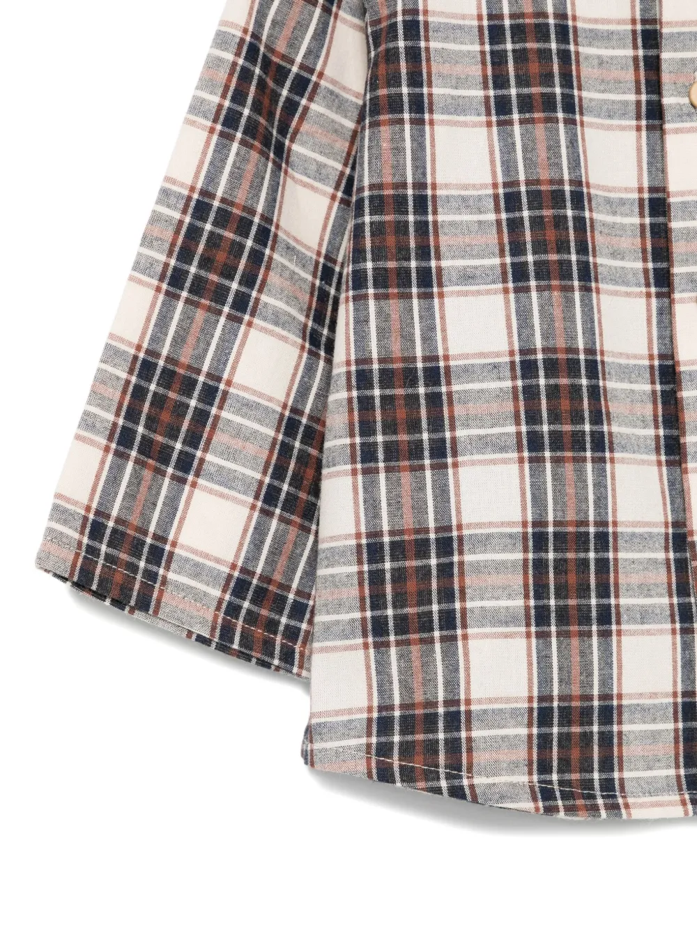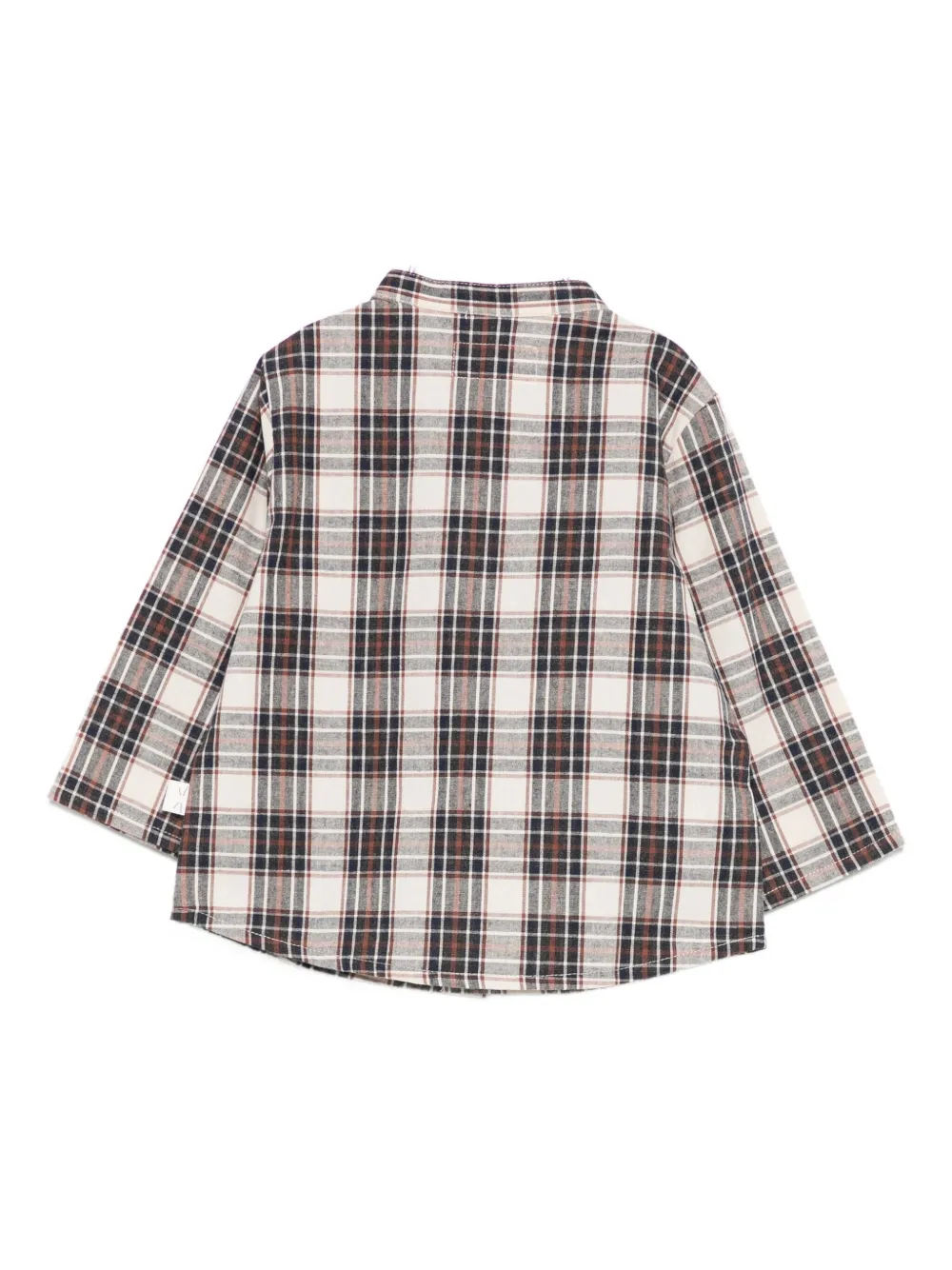 Бежевый клетчатый узор, воротник-стойка, длинные рукава, застежка на пуговицы, хлопок