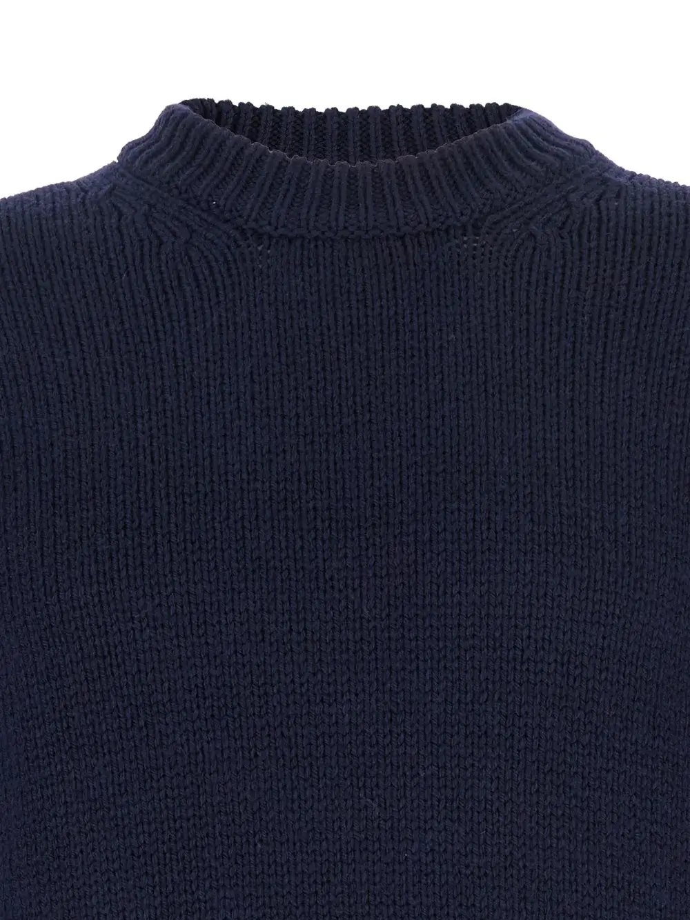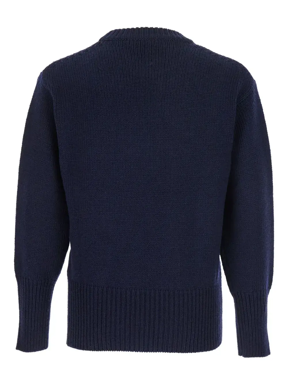 Темно-синие ребристые манжеты, ребристый подол, круглый вырез, длинные рукава, шерсть