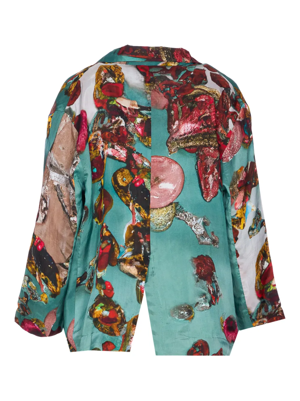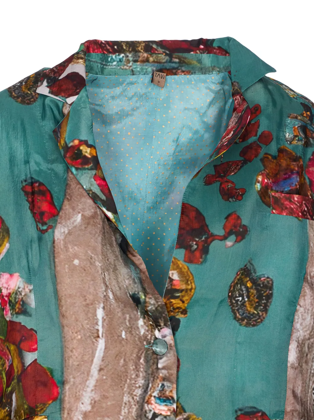 Абстрактный цветочный принт сине-зеленого цвета, застежка на пуговицы, карманы, разрез сзади