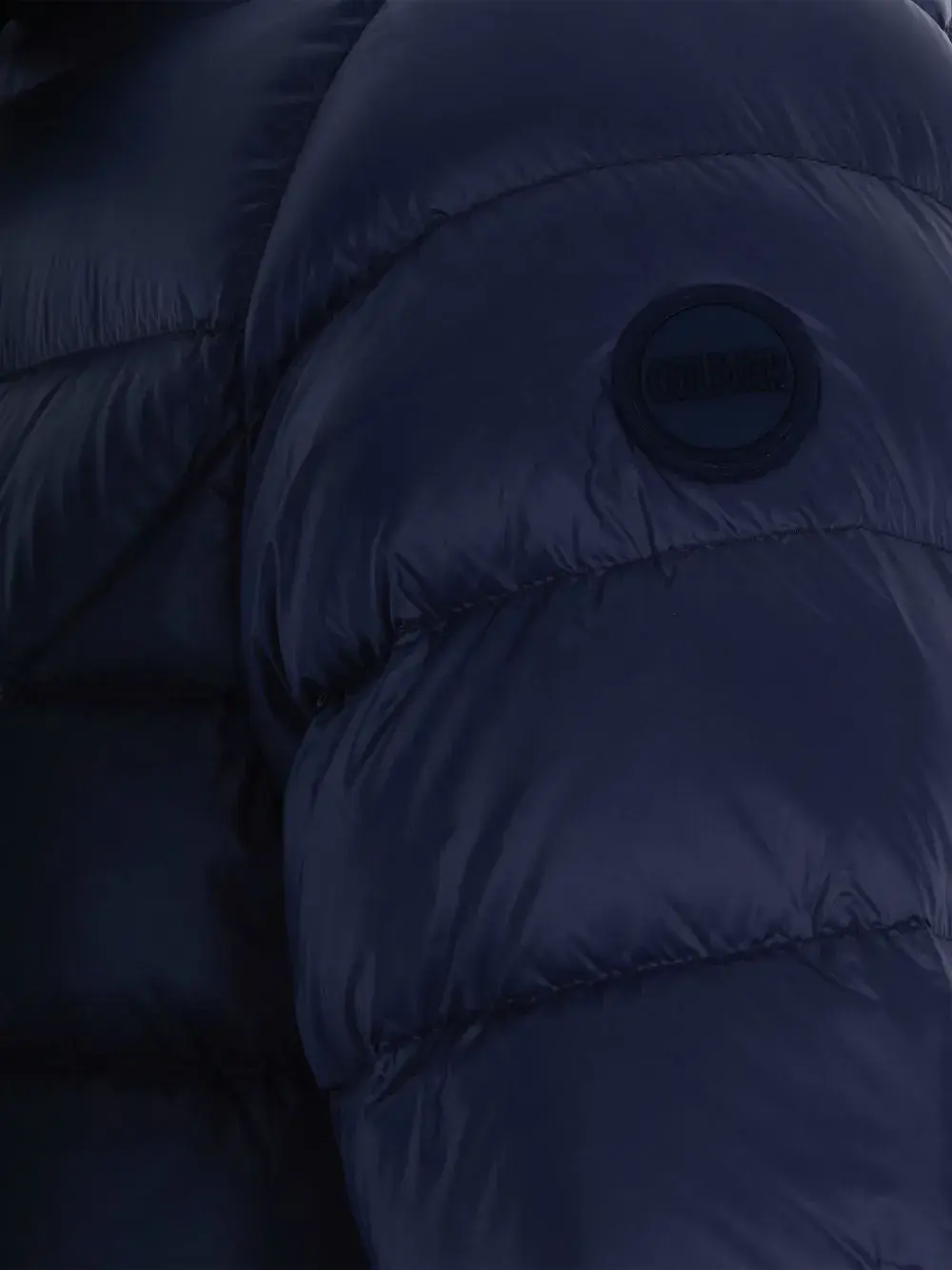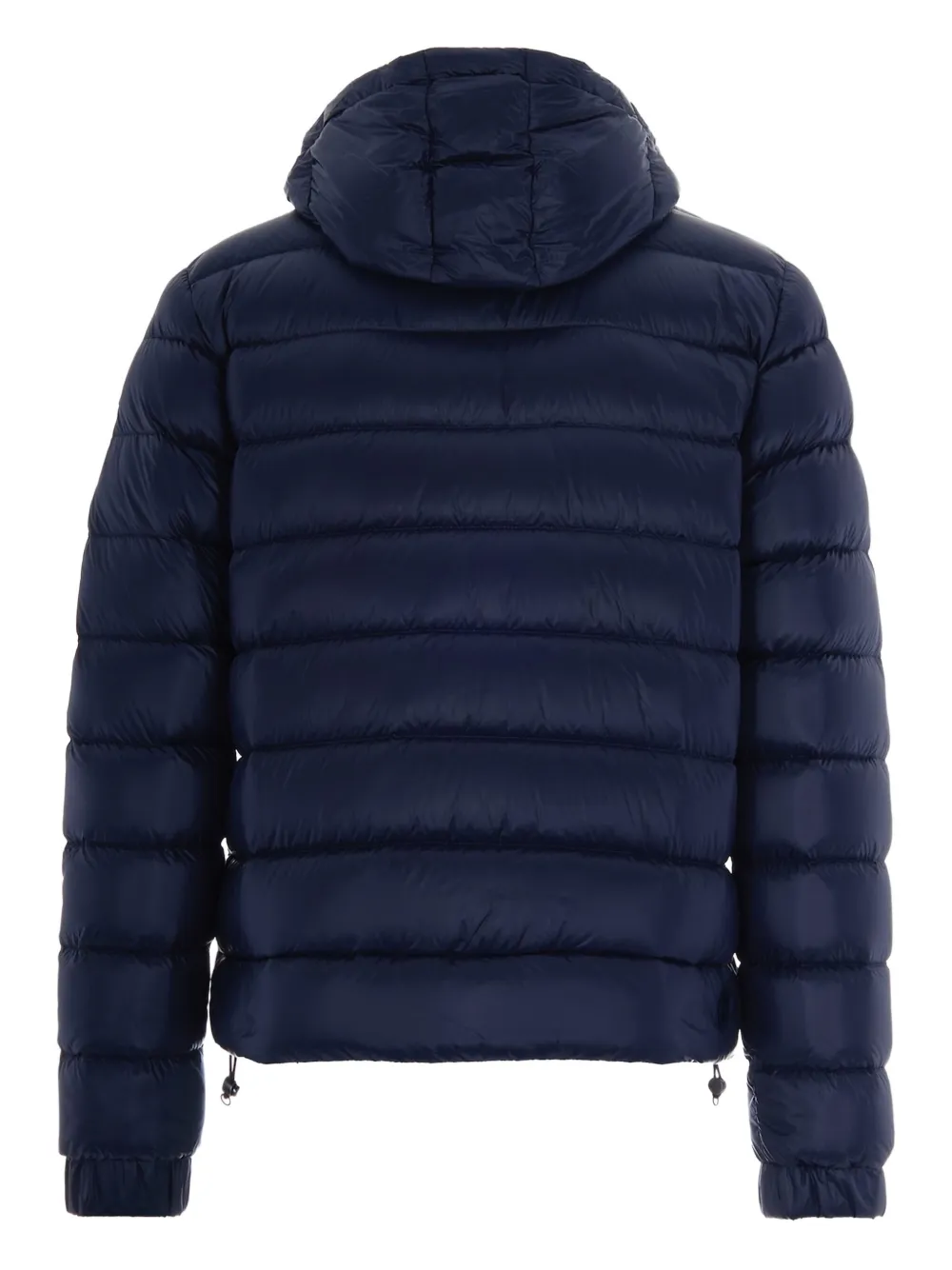Темно-синяя стеганая конструкция с капюшоном, застежкой-молнией и нашивкой с логотипом
