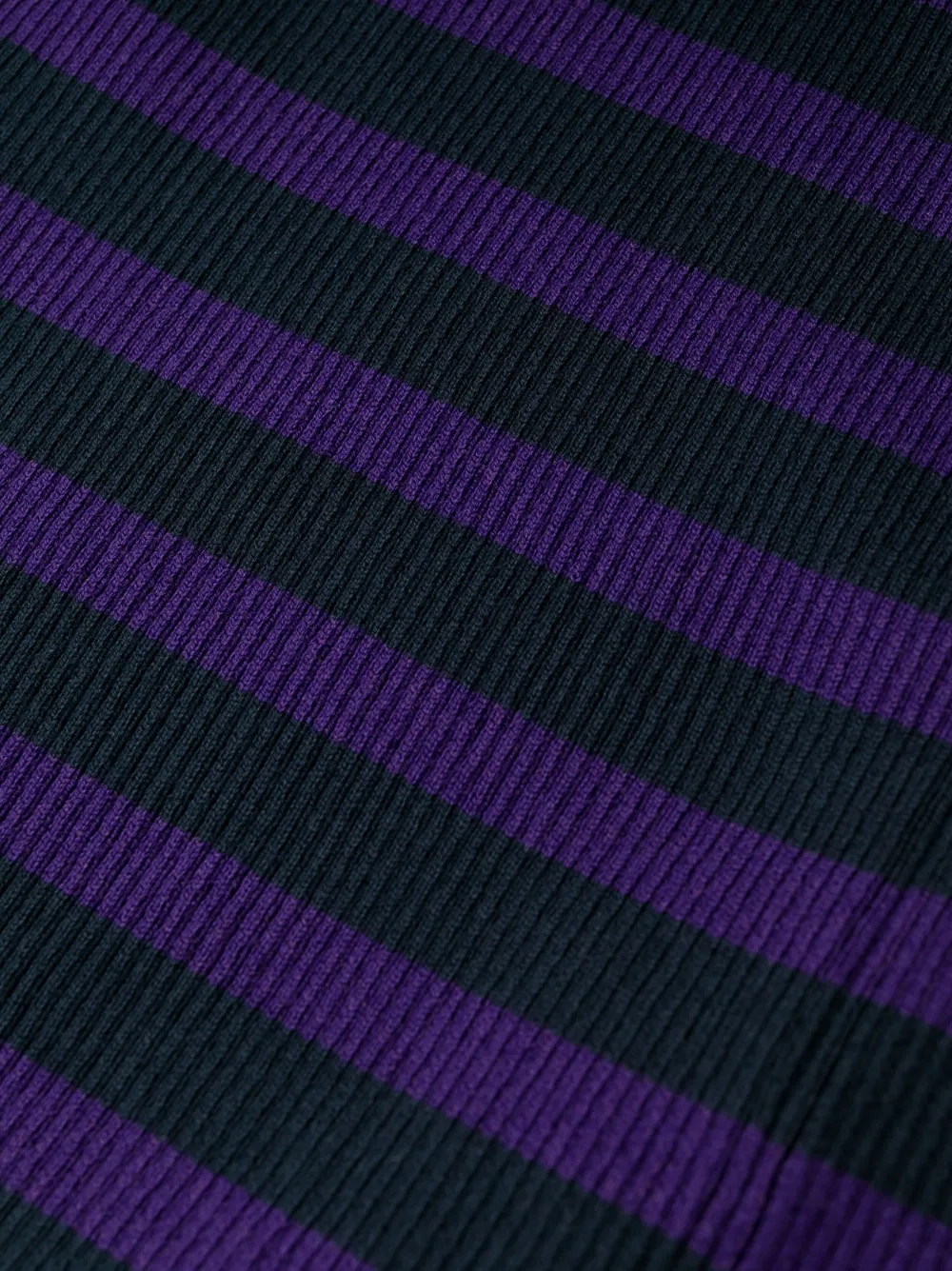 Темно-фиолетовый смесовый хлопок сочетание двух оттенков узор в горизонтальную полоску круглый вырез длинные рукава Conscious: Этот товар как минимум на 50% состоит из органических материалов.