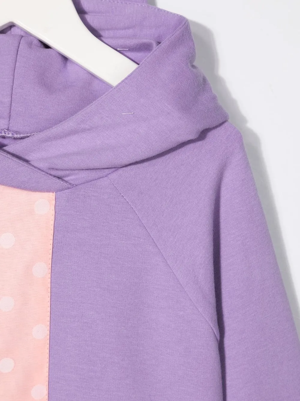Крупный бант, принт в горох, классический капюшон, длинные рукава реглан, манжеты в рубчик и прямой подол. Цвет: фиолетовый.