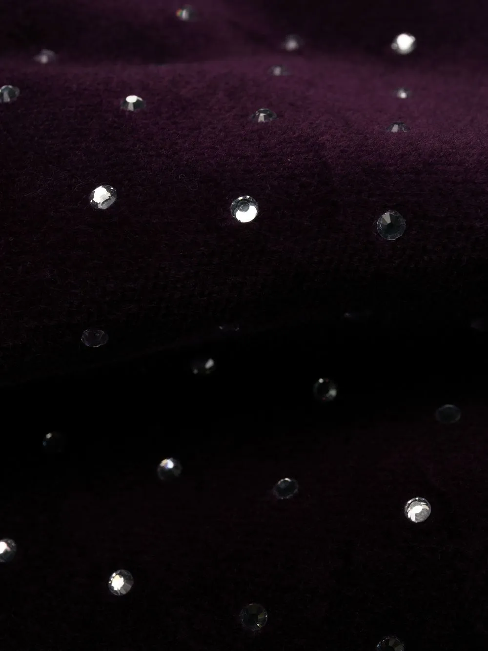 Фиолетовый, хлопок, бархатистое покрытие, декор из кристаллов, прямой крой, потайная застежка спереди и петли для ремня.