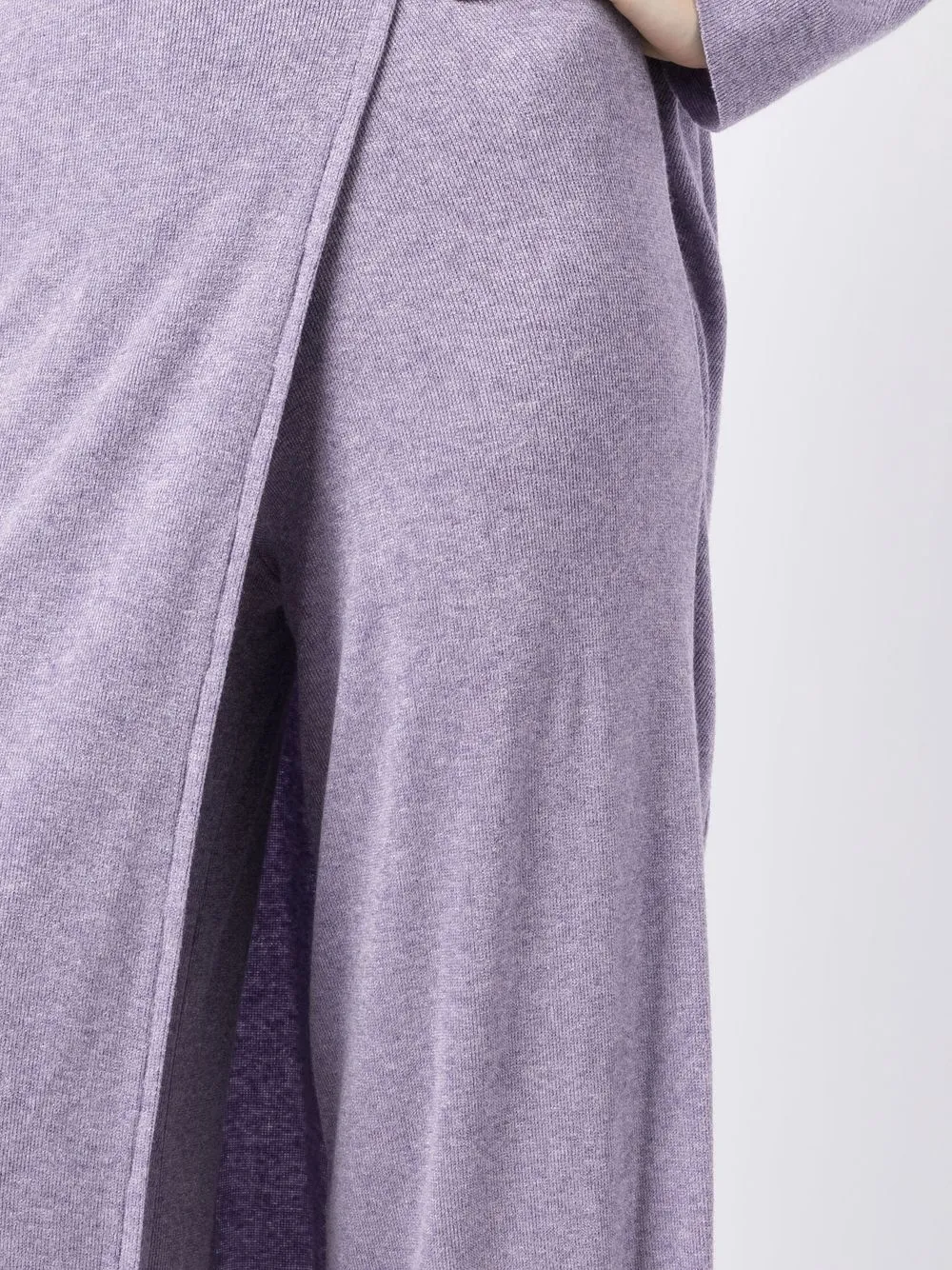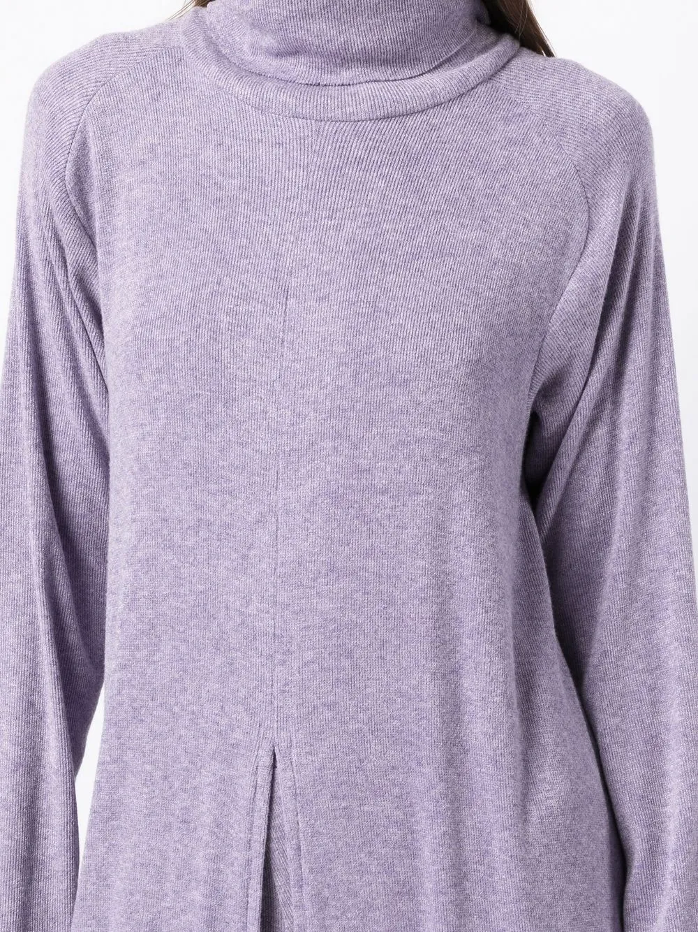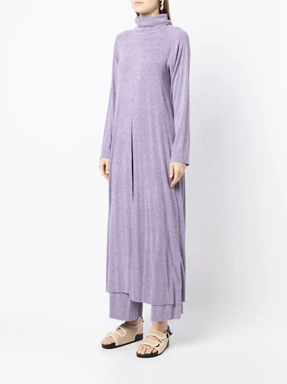 Темно-фиолетовый, хлопок, трикотажный материал, высокий воротник, длинные рукава и длина макси.