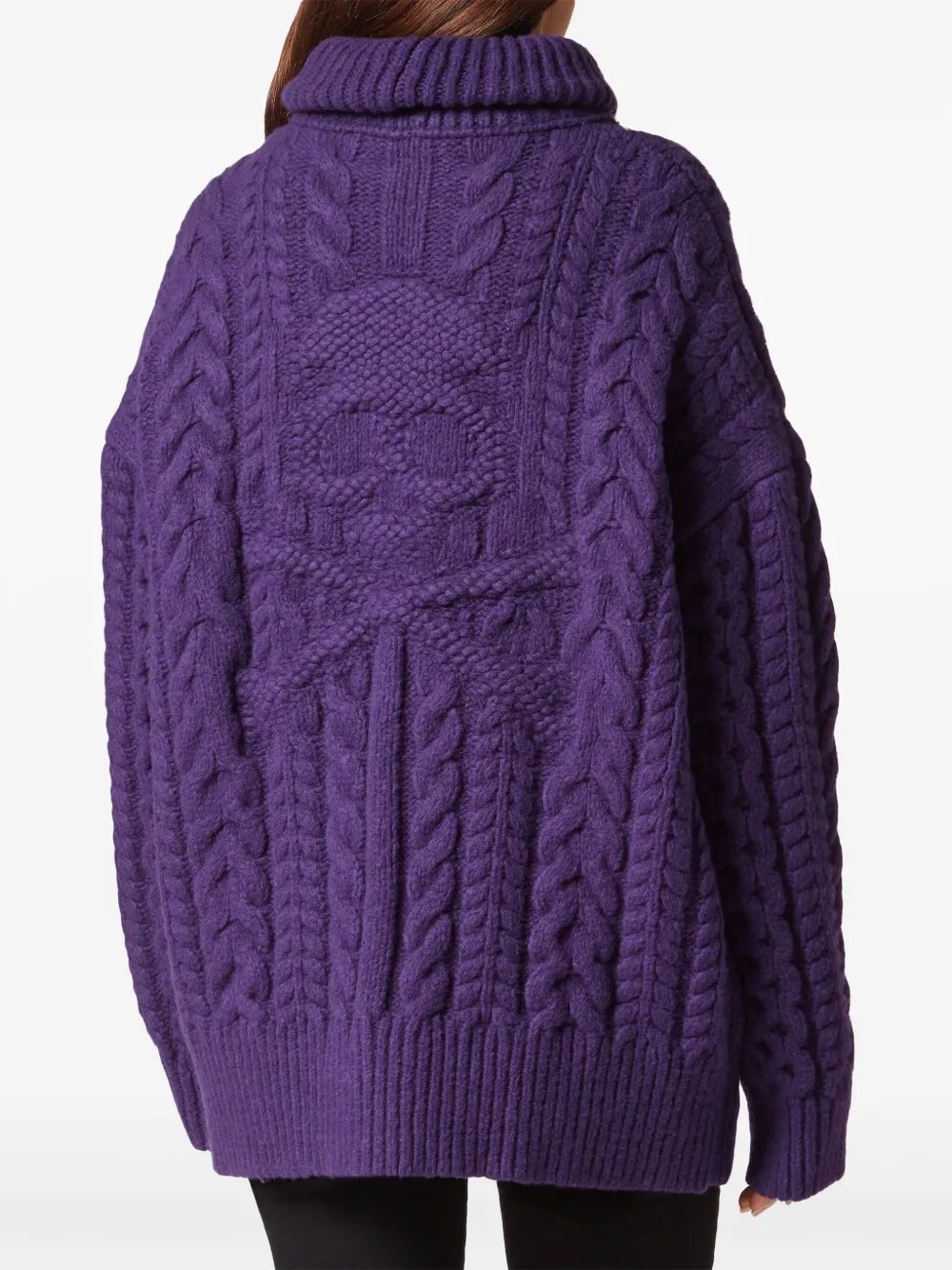 Темно-фиолетовый водолазка с отделкой в рубчик с косичной вязкой