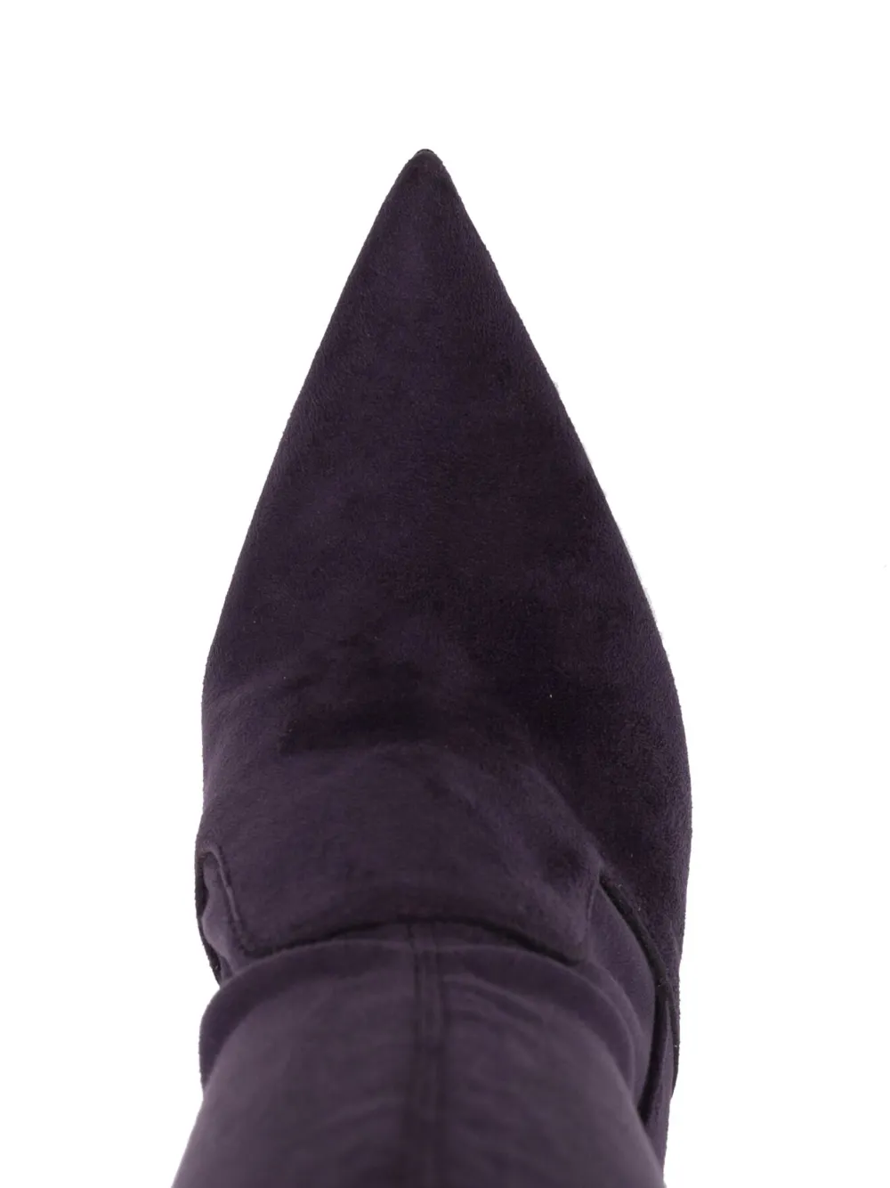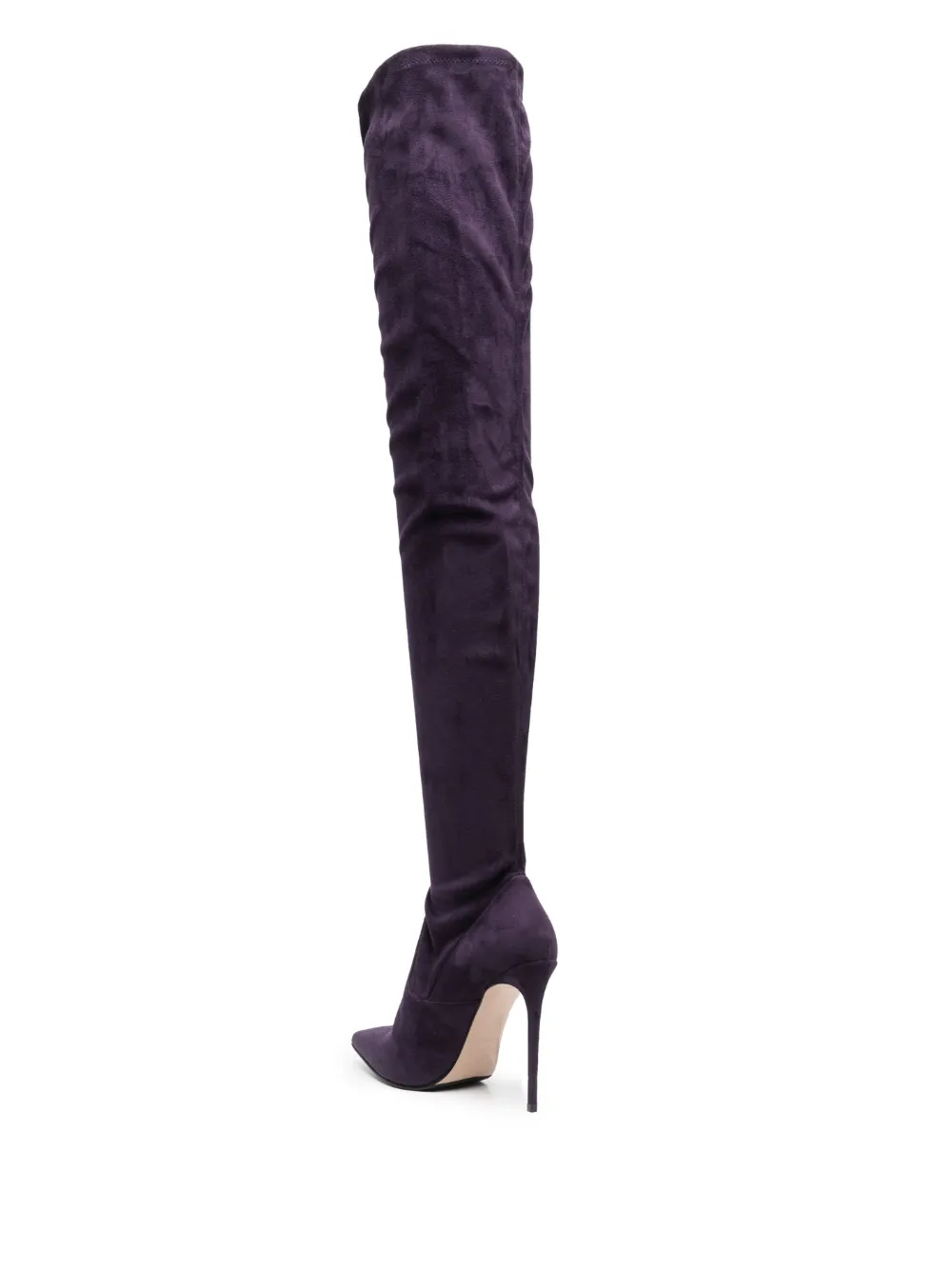 Темно-фиолетовый, телячья кожа, козья кожа, замша, модель без застежки, заостренный носок, высота до линии бедра и каблук на высокой шпильке.