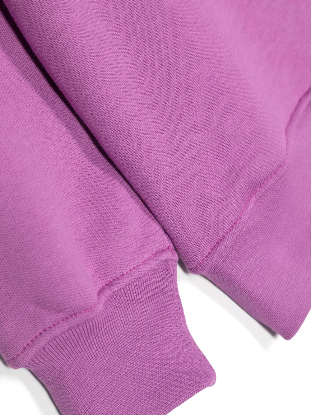 Лиловый, хлопок, логотип спереди, круглый вырез, приспущенные плечи и длинные рукава.