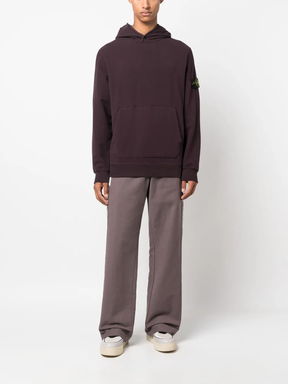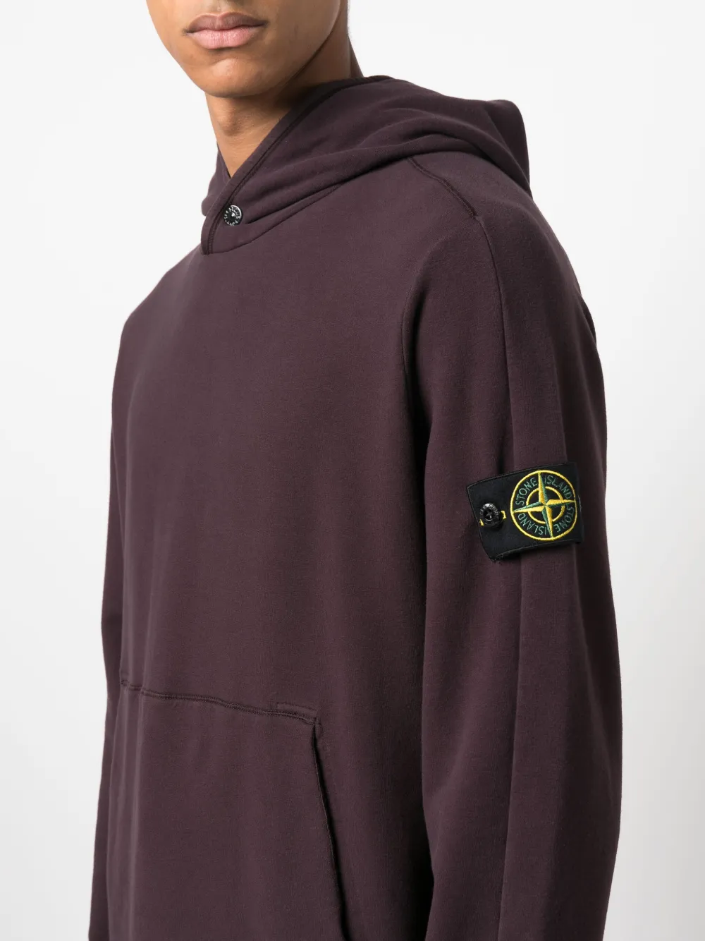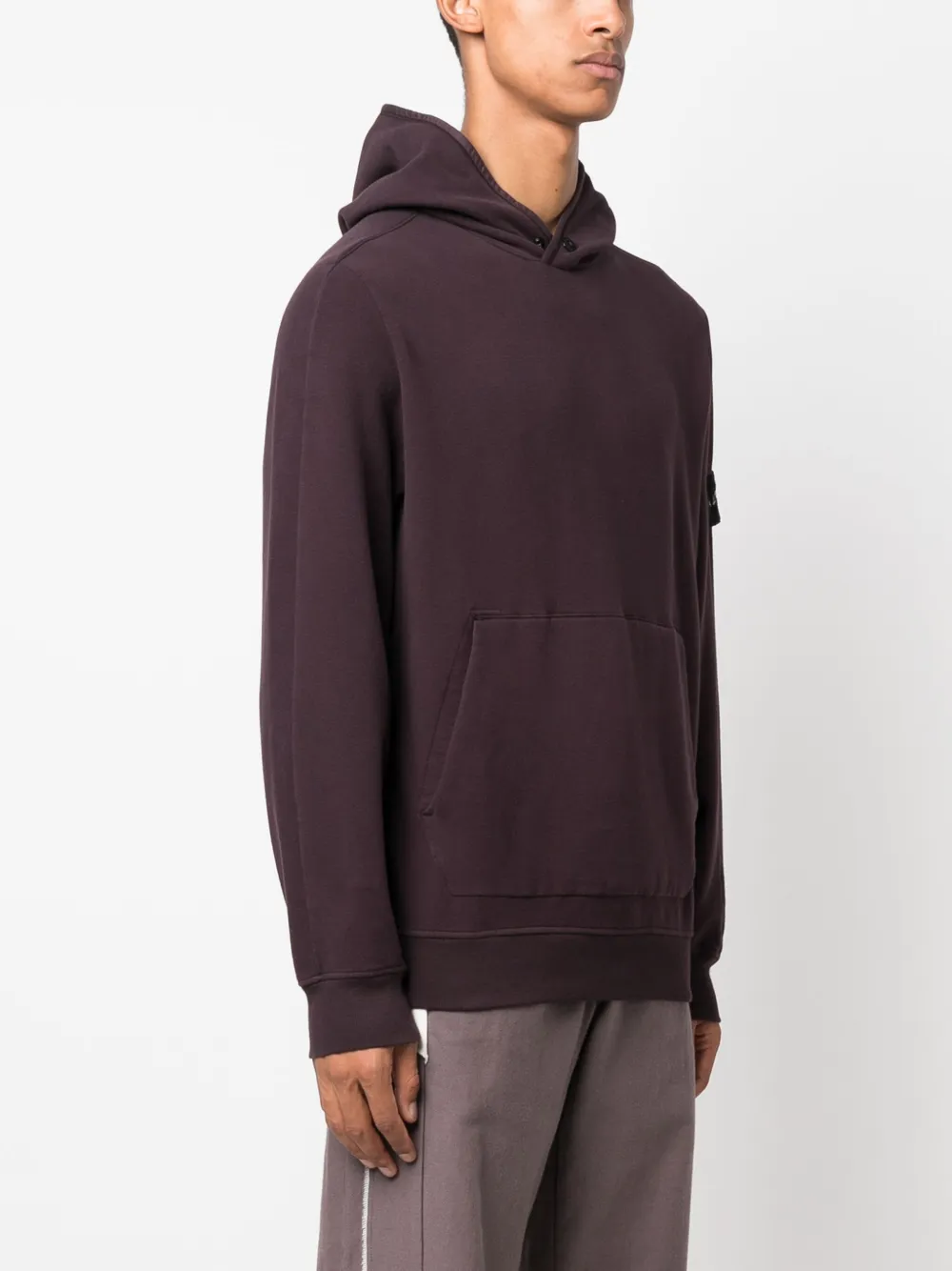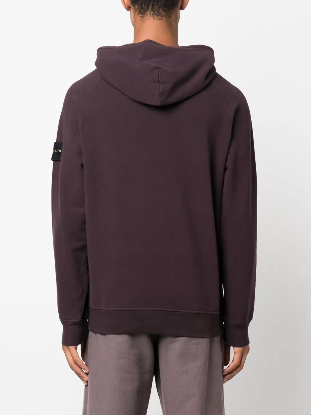 Темно-фиолетовый, эластичный хлопок, знаковая деталь в виде компаса, нашивка с логотипом на рукаве, классический капюшон, длинные рукава, карман-муфта и прямой подол.