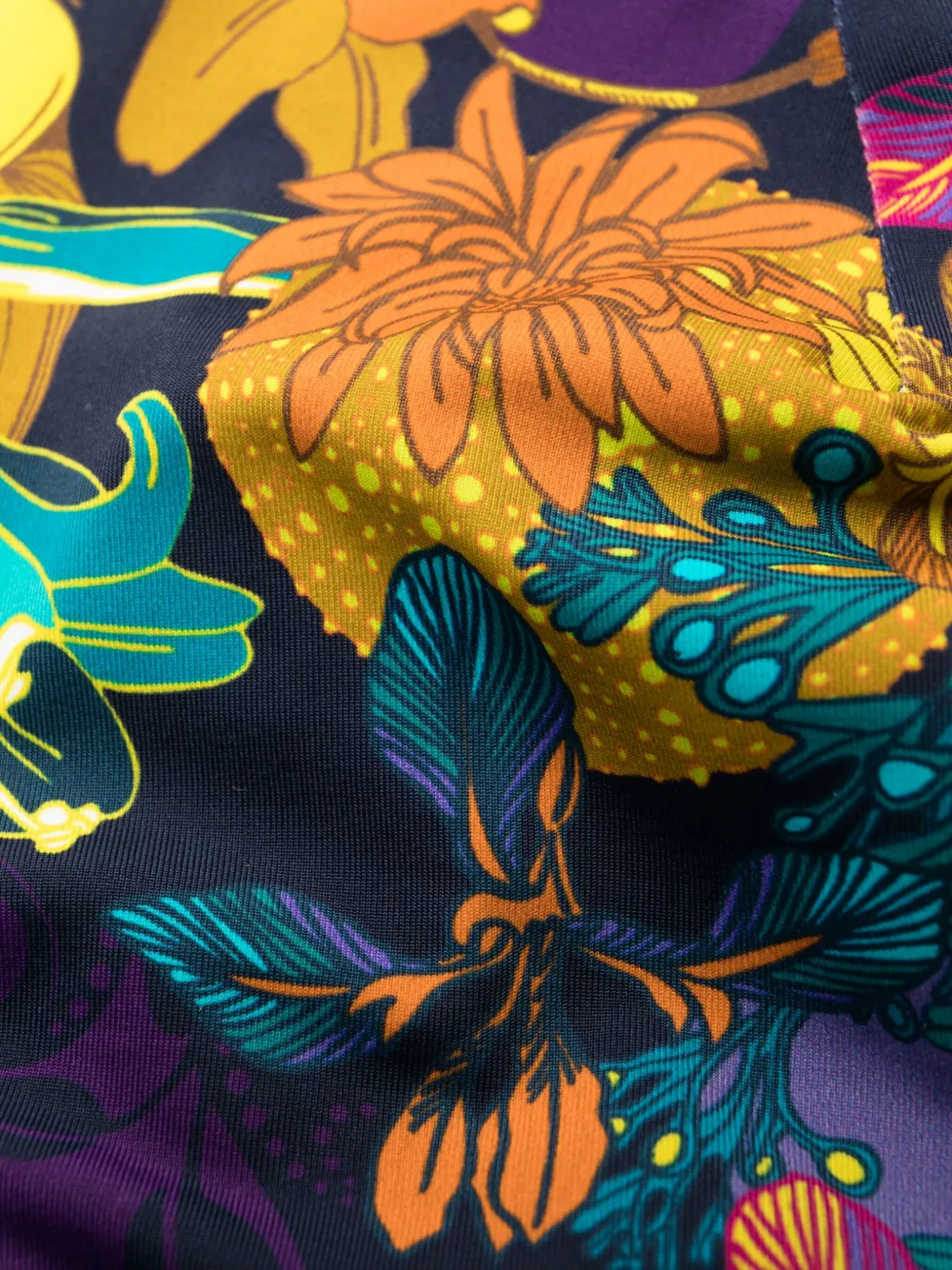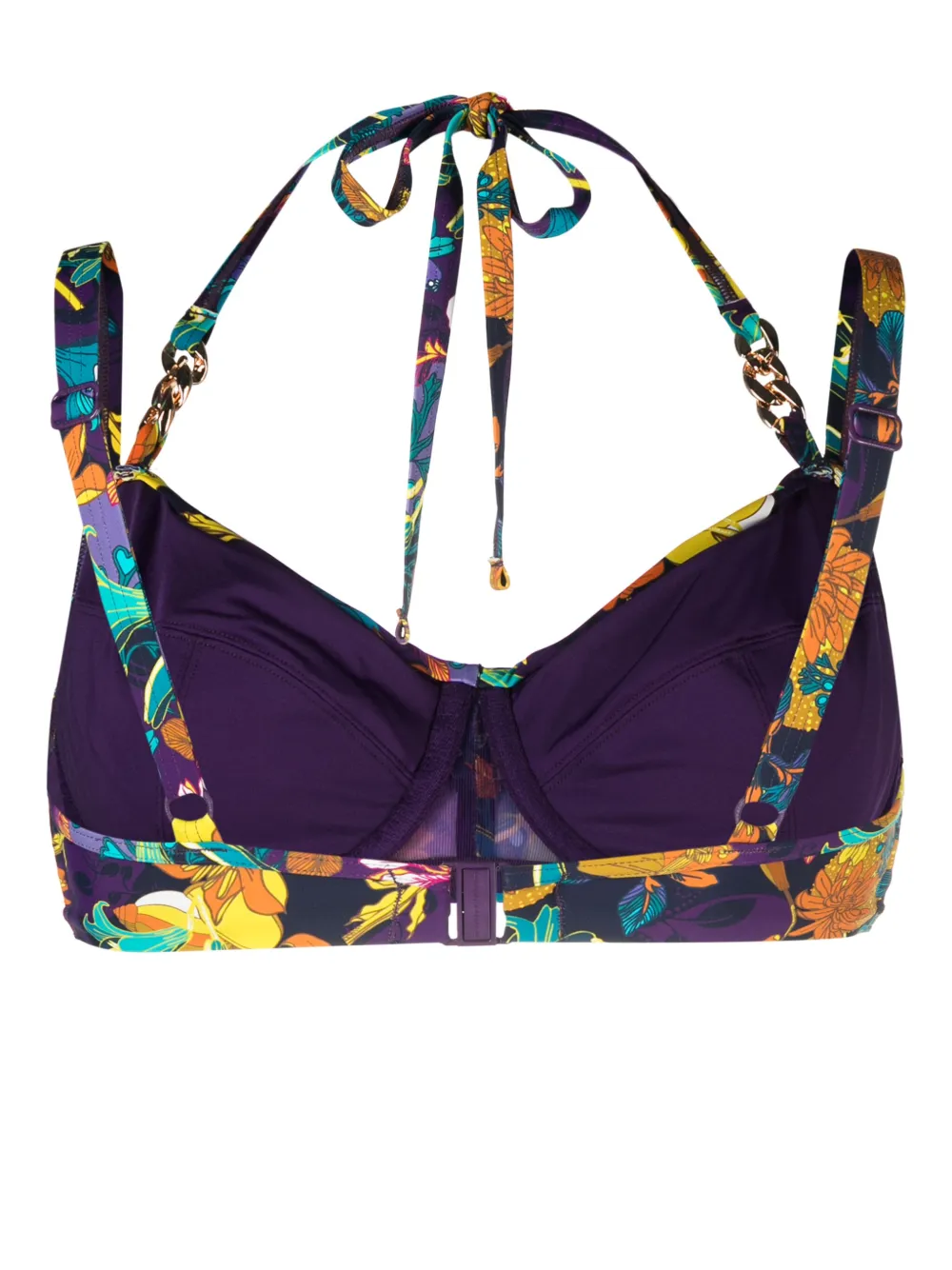 Подробнее о товаре: Эластичный материал, золотистая фурнитура, цепочка, сплошной цветочный принт, завязки вокруг шеи, две регулируемые бретели, V-образный вырез и застежка на крючок сзади. Пожалуйста, примеряйте купальники и пляжные шорты только поверх собственного белья. Этот товар как минимум на 50% состоит из переработанных или повторно использованных материалов. Узнать больше о том, какие товары получают отметку «Ответственный выбор», можно из материала «Как мы оцениваем экологичность и этичность».