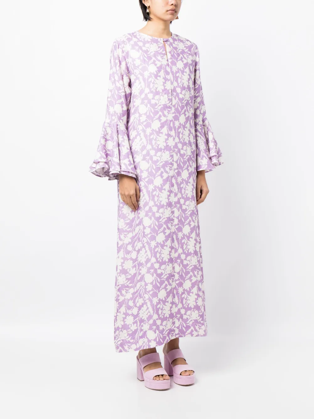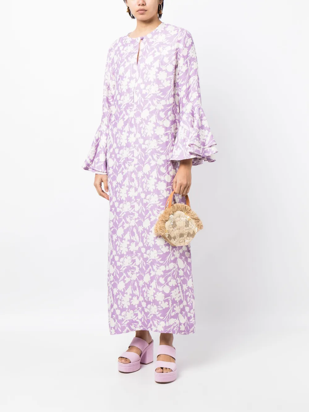Платье-кафтан с оборками и цветочным принтом Bambah, фиолетовый