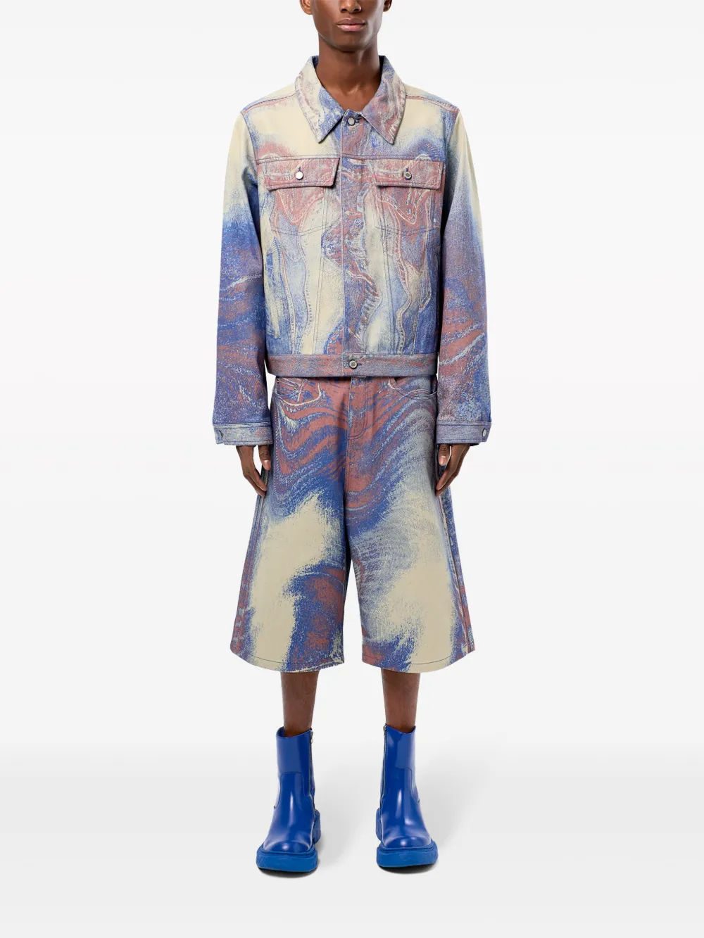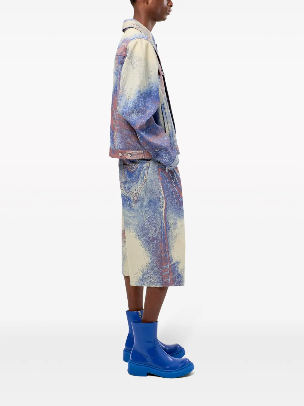 Подробнее о товаре: • индиго/разноцветный • органический хлопок • переработанный хлопок • деним • принт с абстрактным узором • нашивка • петли для ремня • потайная застежка на молнии и пуговицах • классическая пятикарманная модель • прямой подол • Это унисекс-модель. Обратите внимание, что для нее используется мужская размерная сетка. • Этот товар как минимум на 50% состоит из переработанных или повторно использованных материалов.
