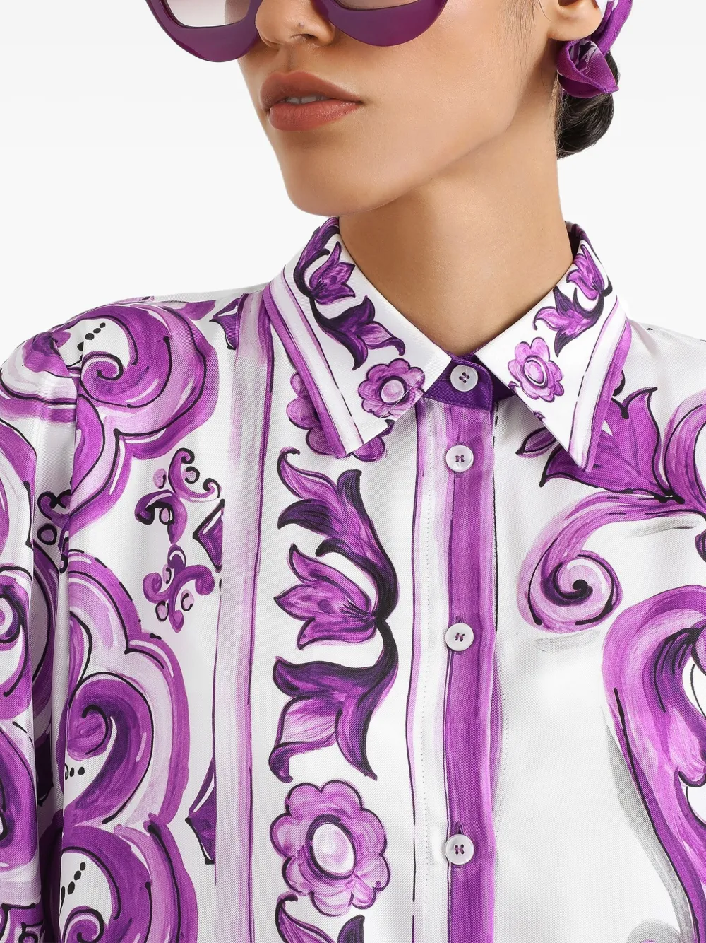 Платье-рубашка с принтом Maiolica DOLCE & GABBANA, фиолетовый
