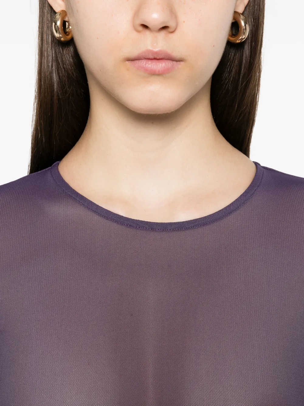 Темно-фиолетовая прозрачная сетка с длинными рукавами и круглым вырезом
