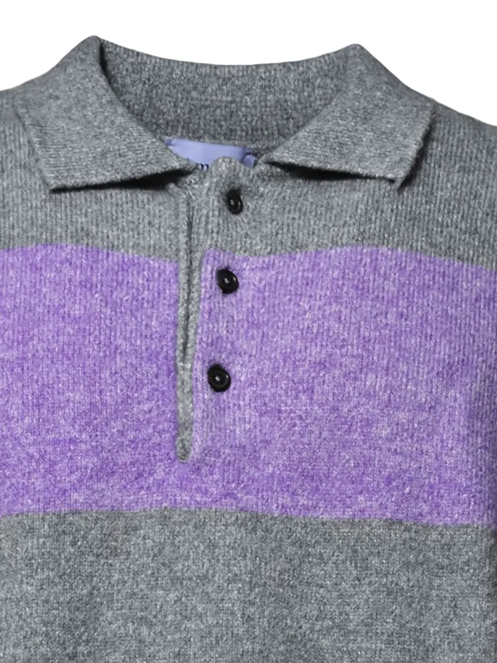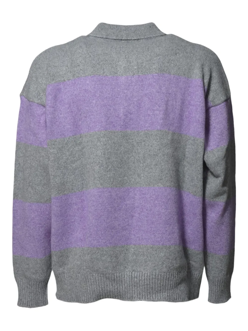 Серо-фиолетовые полосы, планка с пуговицами, ребристые манжеты, ребристый подол