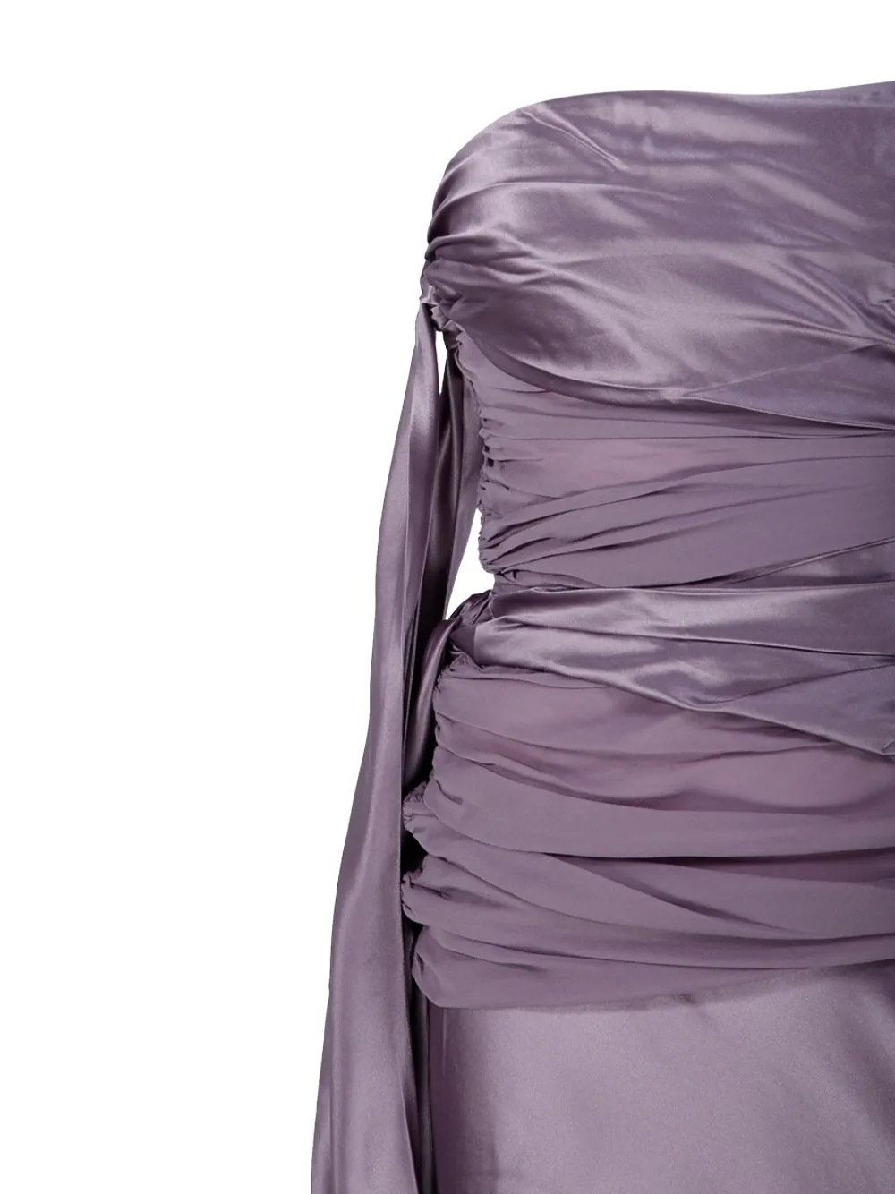 Фиолетовый без бретелек, драпированный лиф, асимметричный подол