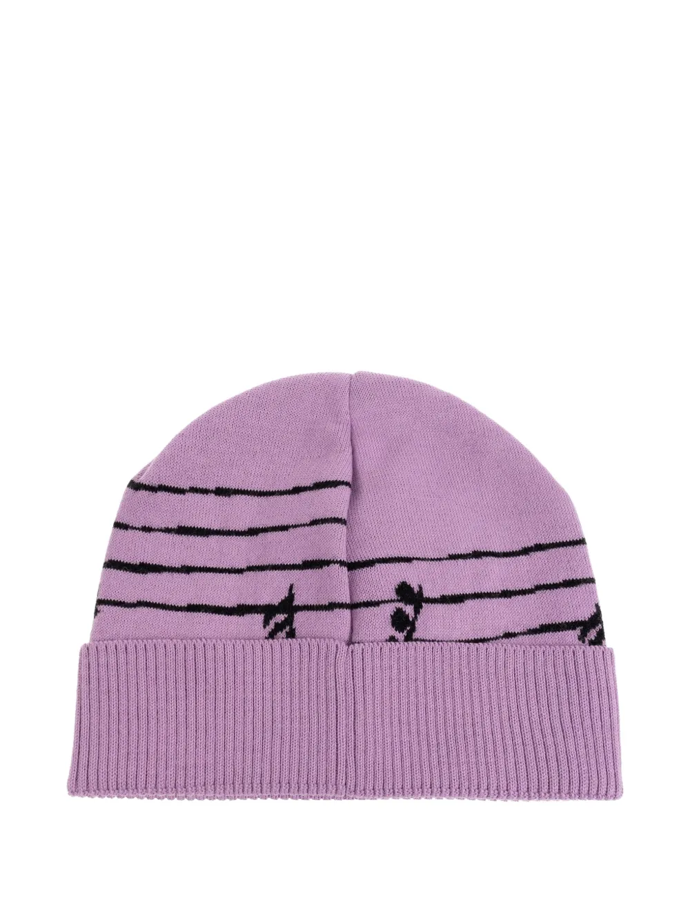 Фиолетовое украшение в виде музыкальной ноты, украшение в виде плюшевого мишки, ребристый трикотажный козырек, нашивка с логотипом, отвороты