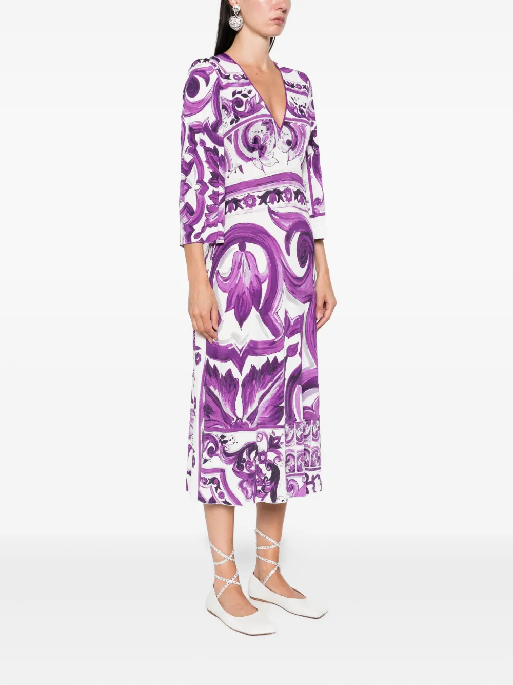 Платье с принтом Maiolica DOLCE & GABBANA, фиолетовый