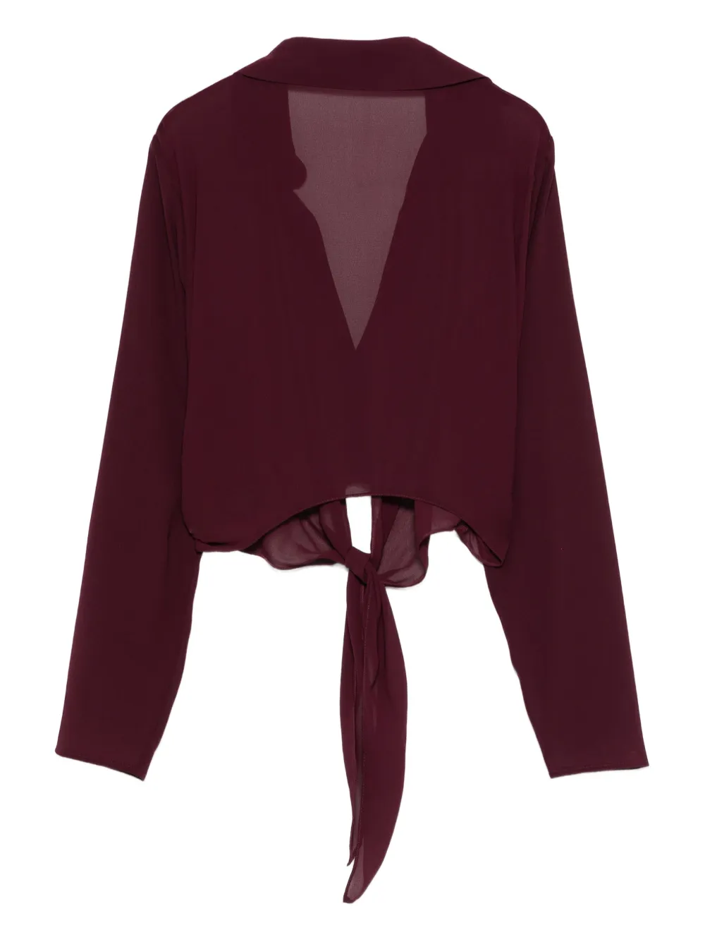 Фиолетовый завязка спереди, длинные рукава, воротник, прозрачная ткань