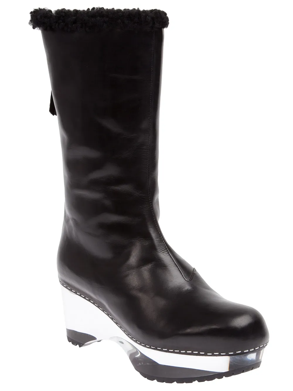 Platform boot от Premiata (Премиата). Закругленный носок и застежка на молнии сзади. Цвет: черный.