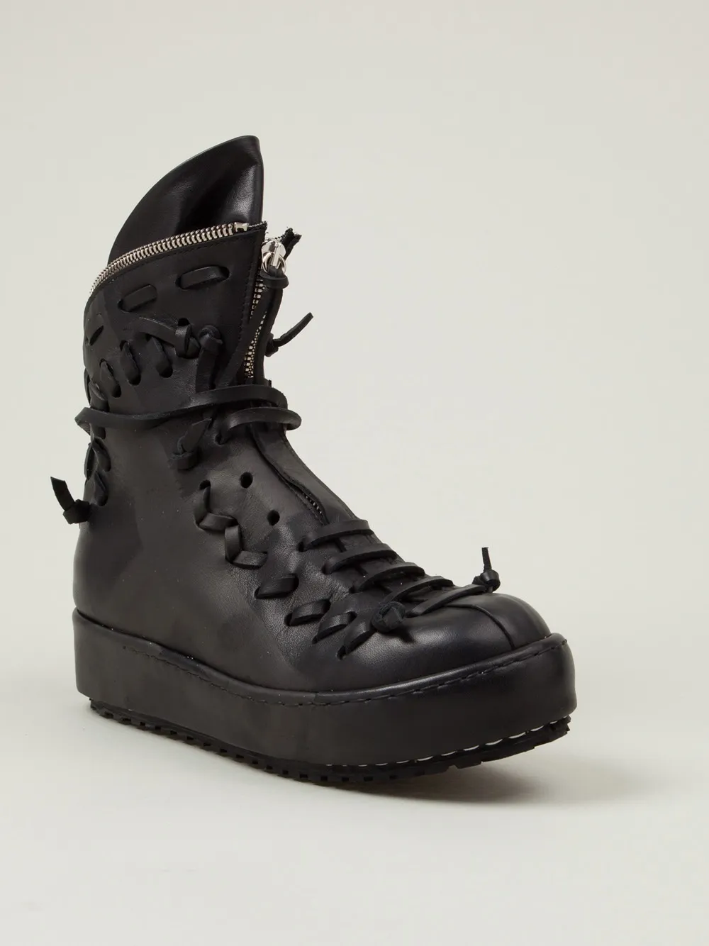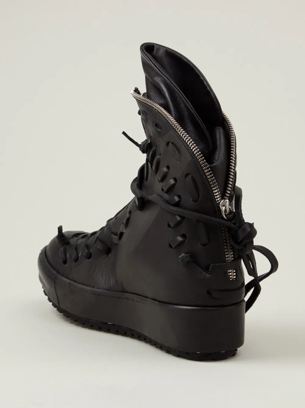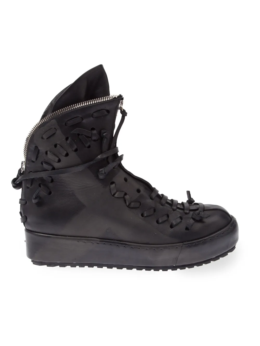Черные высокие кеды из телячьей кожи с молнией от Artselab. Закругленный носок, застежка на молнии сзади, высокая щиколотка.