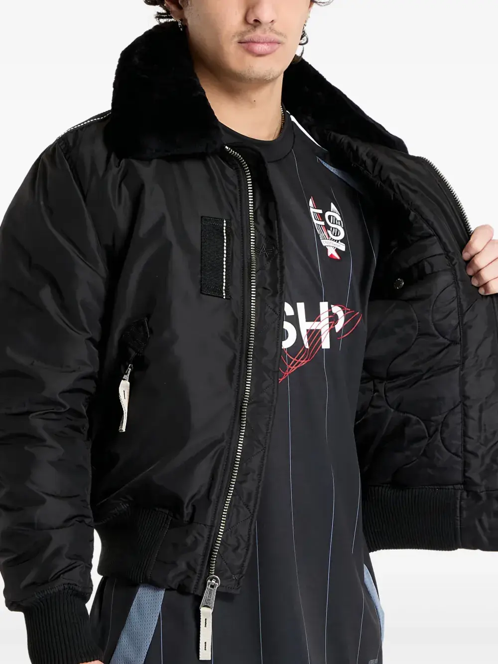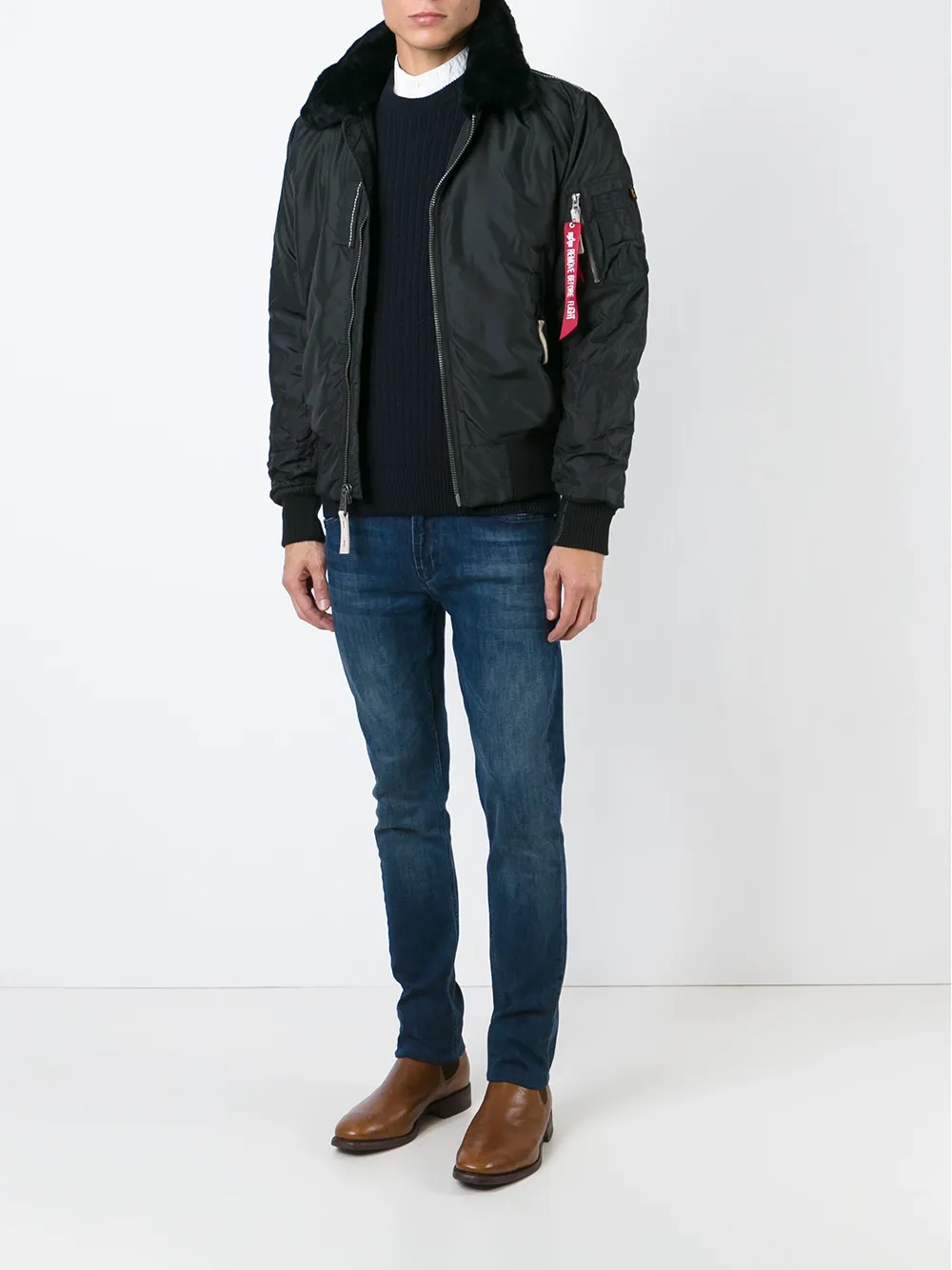 Черная куртка-бомбер от Alpha Industries.