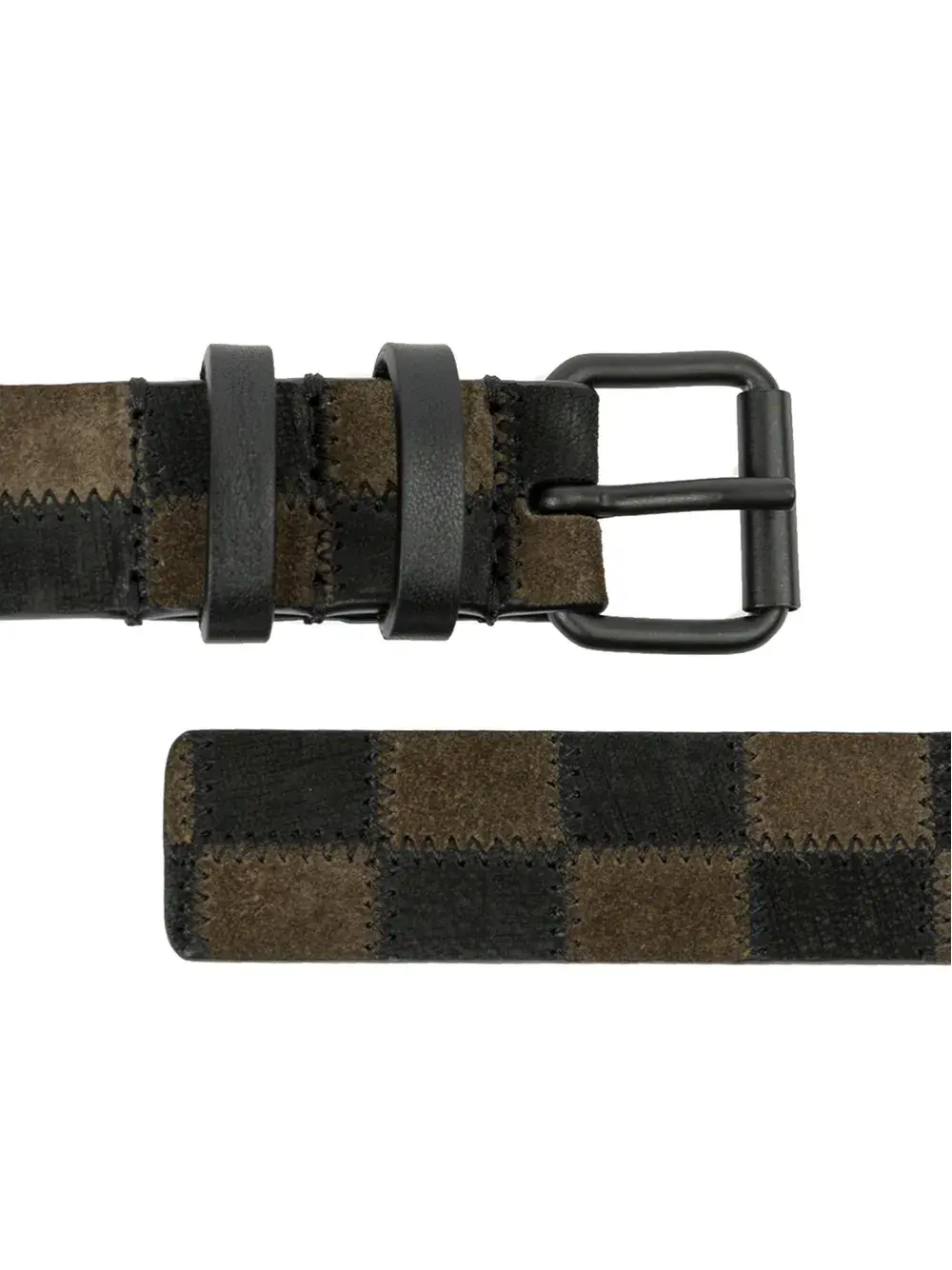Черный с зеленым ремень из кожи и замши в клетку от Haider Ackermann.