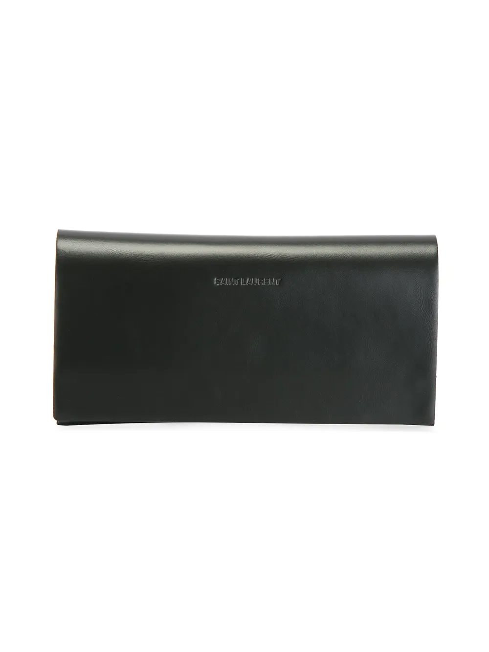 Черные ацетатные солнцезащитные очки от Saint Laurent. Затемненные линзы, тисненый логотип сбоку, серебристая фурнитура. Прилагается защитный чехол.