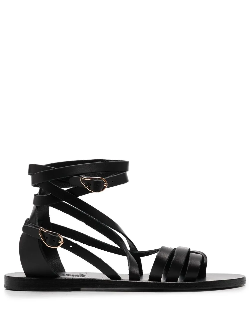 Черные сандалии 'Satira' из кожи буйвола и обычной кожи от Ancient Greek Sandals. POSITIVELY CONSCIOUS: Мы объединились с агентством Good On You, которое составляет рейтинг ответственных брендов. Этот бренд получил отметку «Ответственный выбор», потому что отвечает ключевым стандартам агентства.
