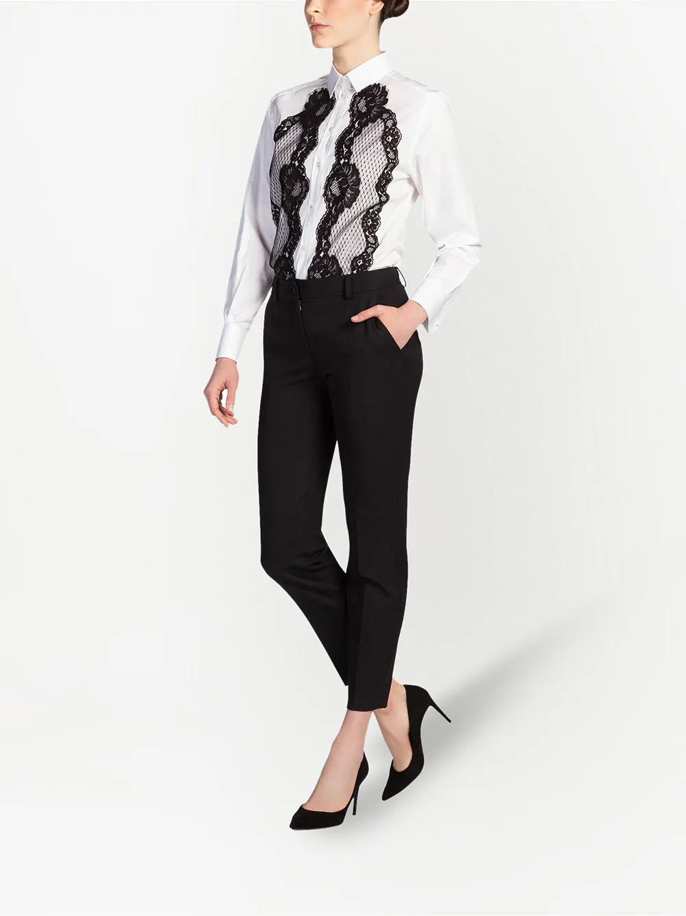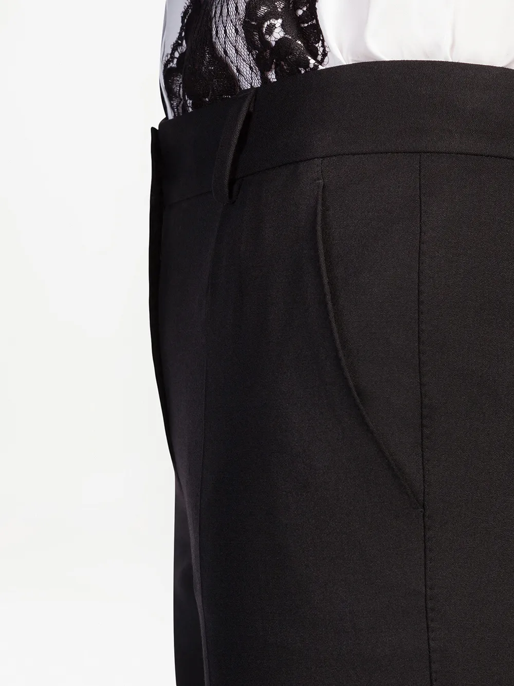 Брюки с аппликацией от Dolce & Gabbana (Дольче энд Габбана). Пояс с петлями для ремня, потайная застежка спереди и узкий крой. Цвет: черный.