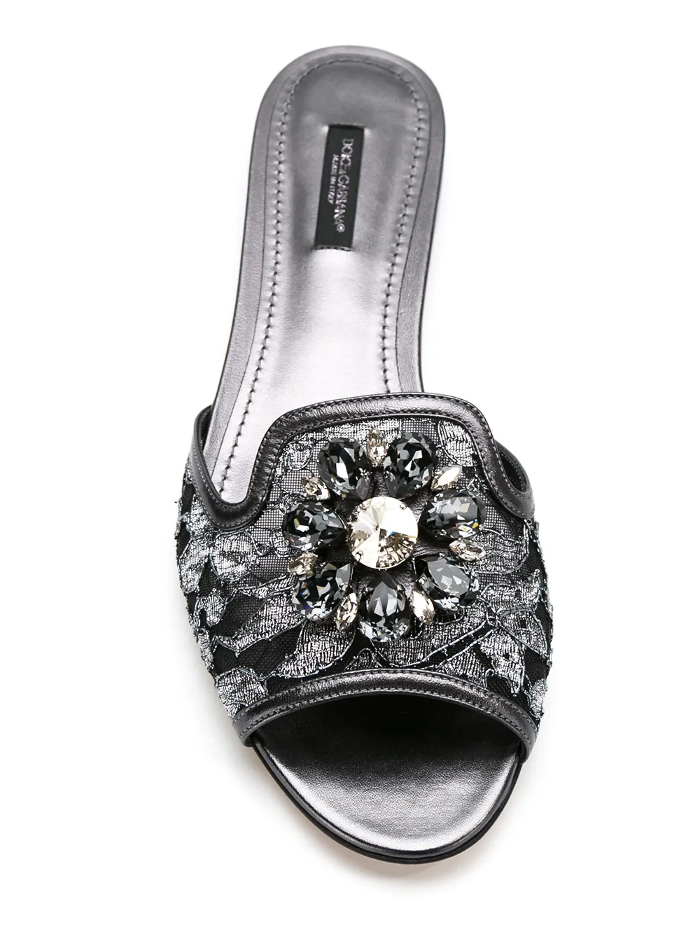 Сандалии Bianca от Dolce & Gabbana (Дольче энд Габбана). Открытый носок, узор из цветочного кружева, украшение из кристаллов и фирменная стелька.